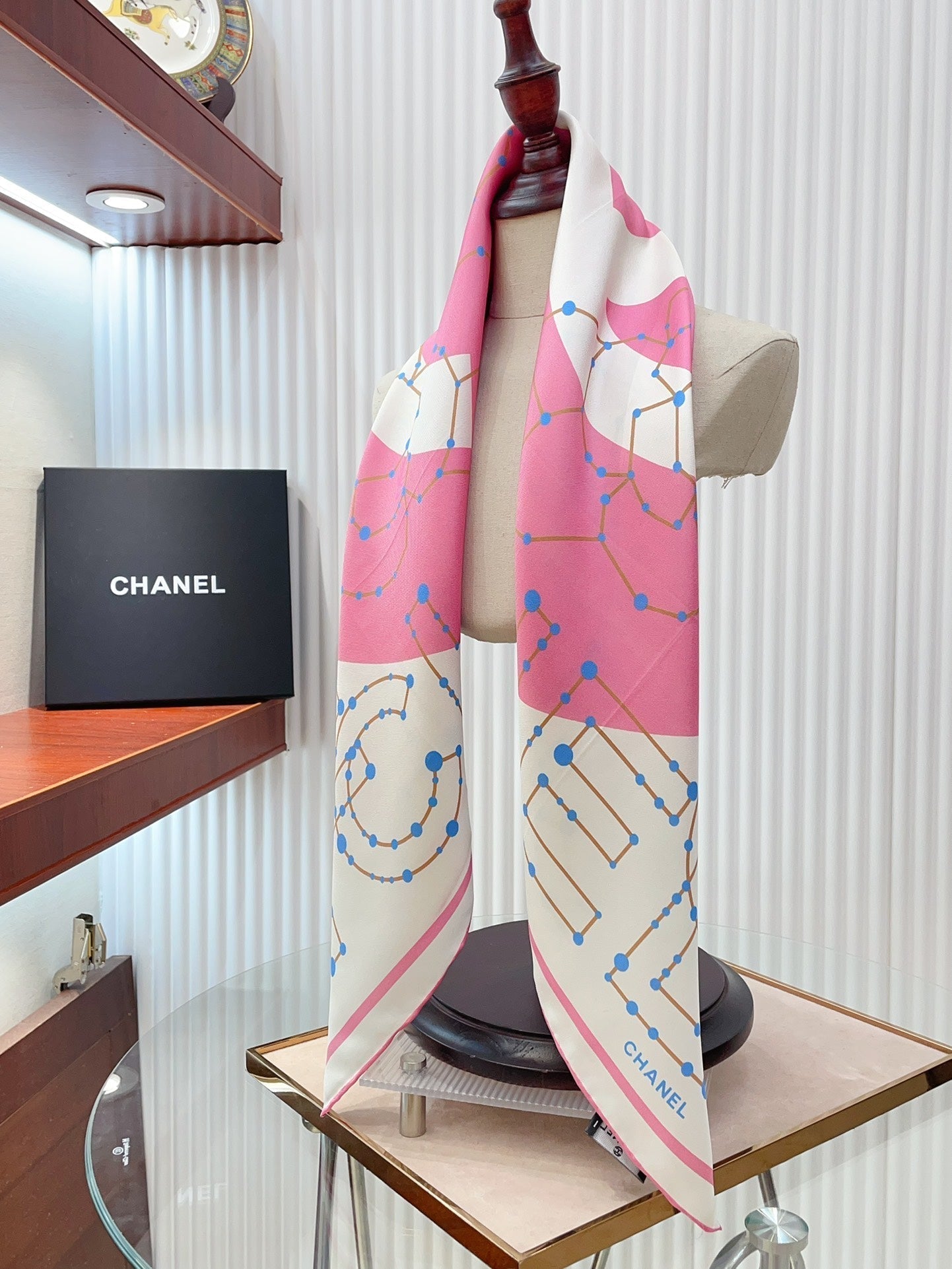 CC Square Scarf 90 CM In White Mix Pink Silk Twill 174874