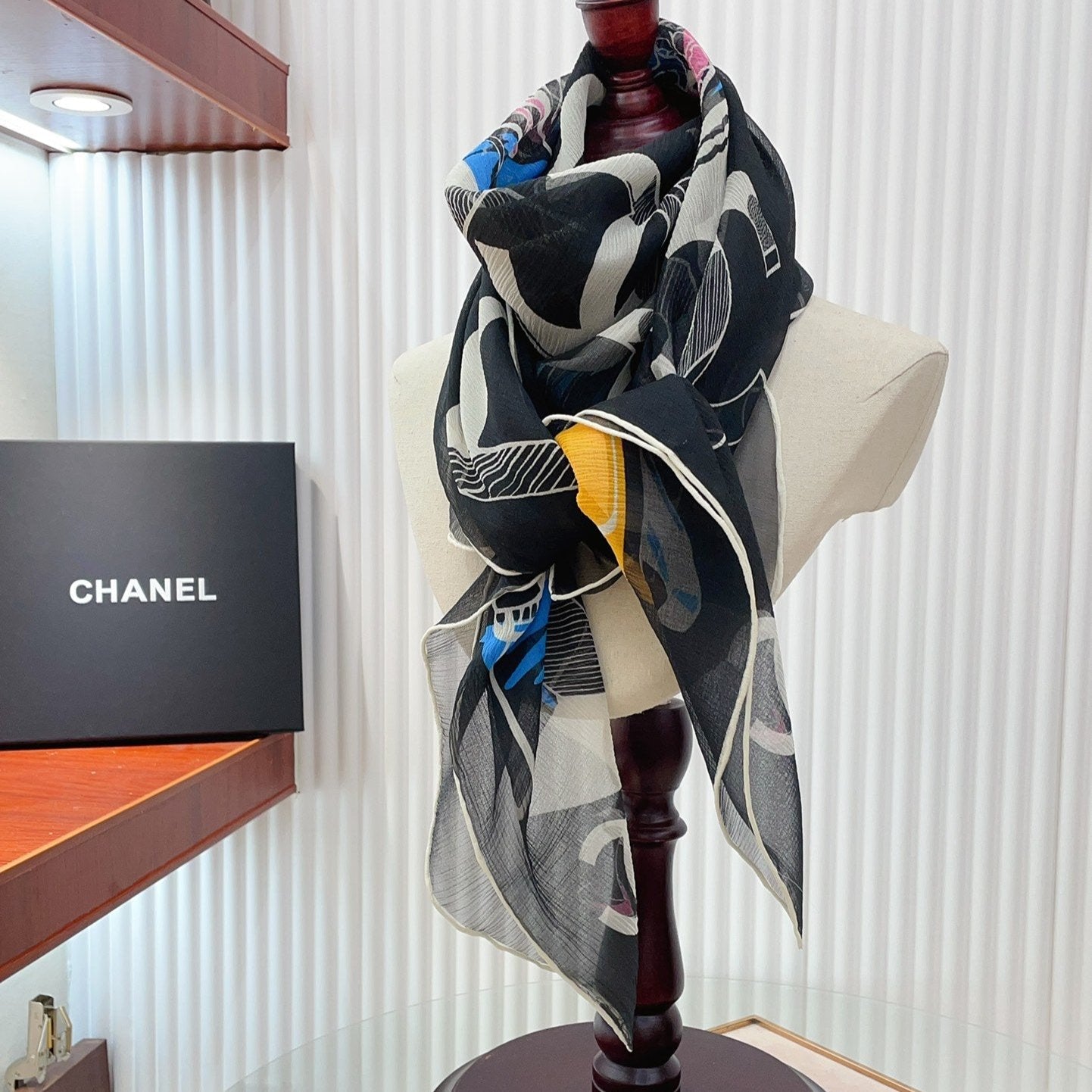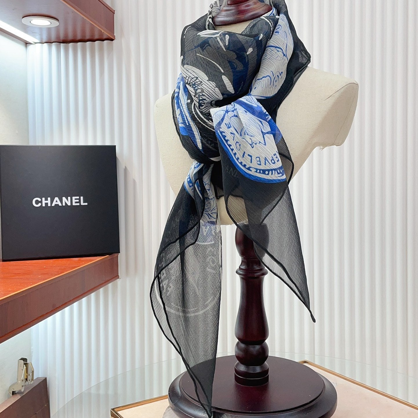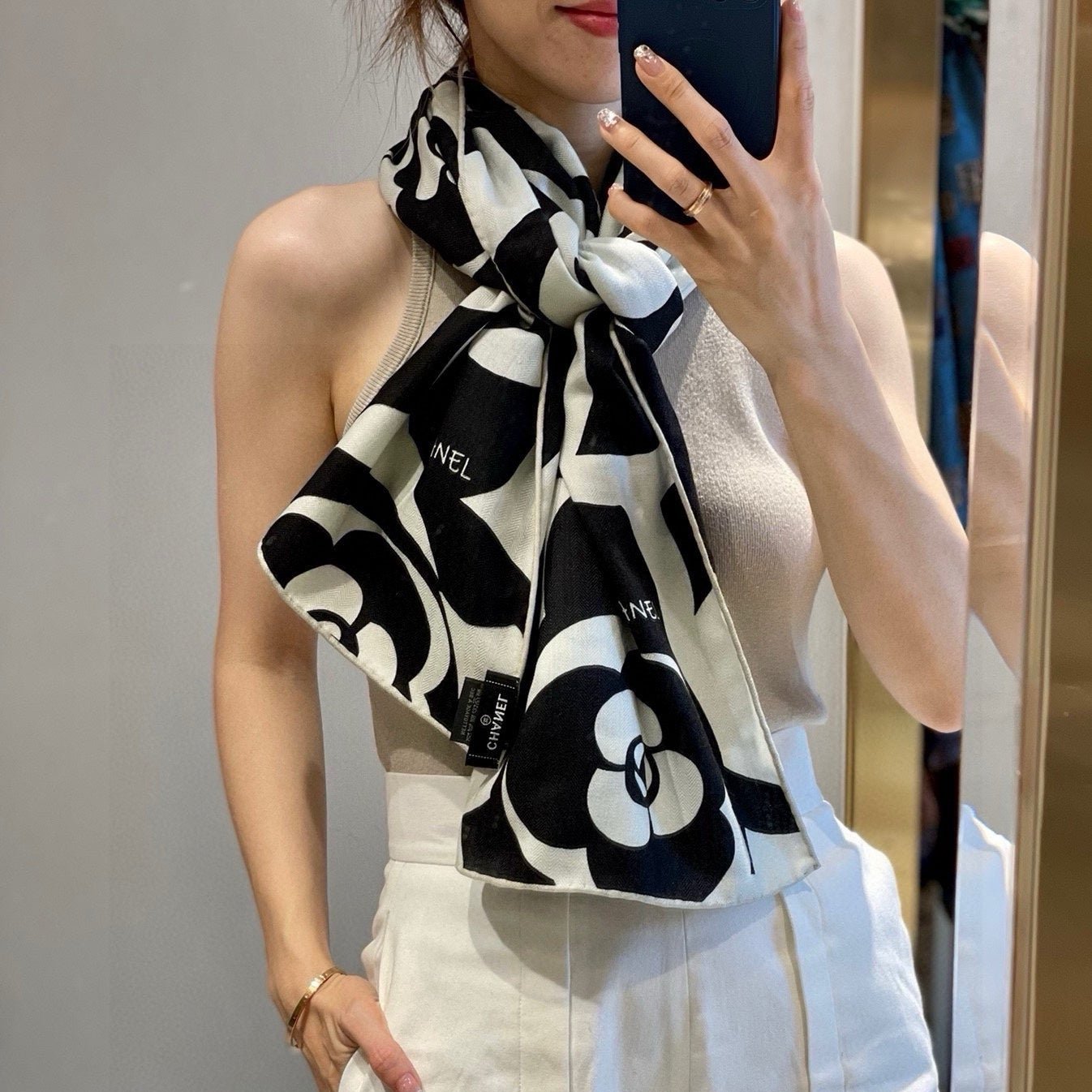 CC Scarf 185 CM In Black White Cashmere Silk 182459