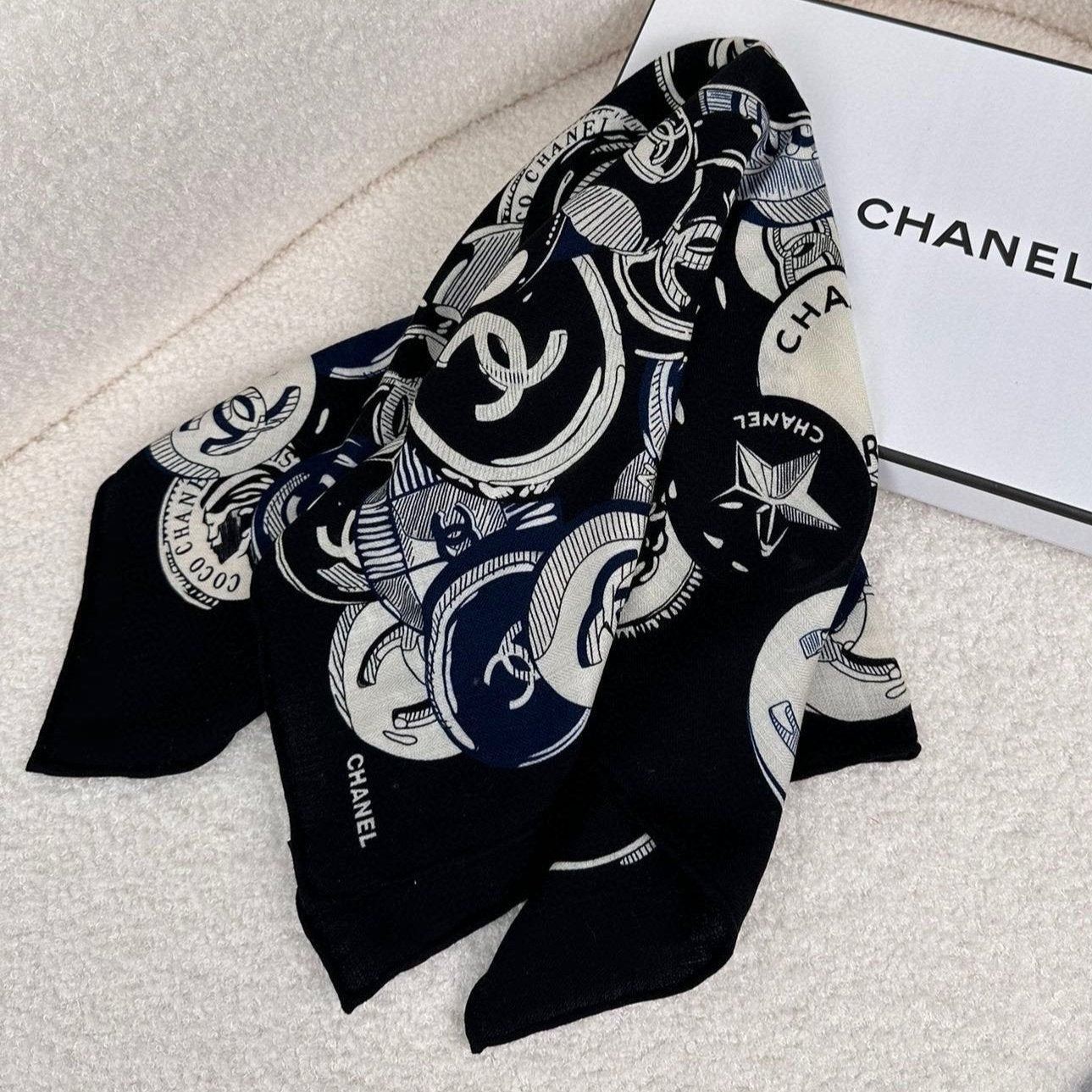 CC Square Scarf 90 CM In Black Mix White Cashmere And Silk 398258
