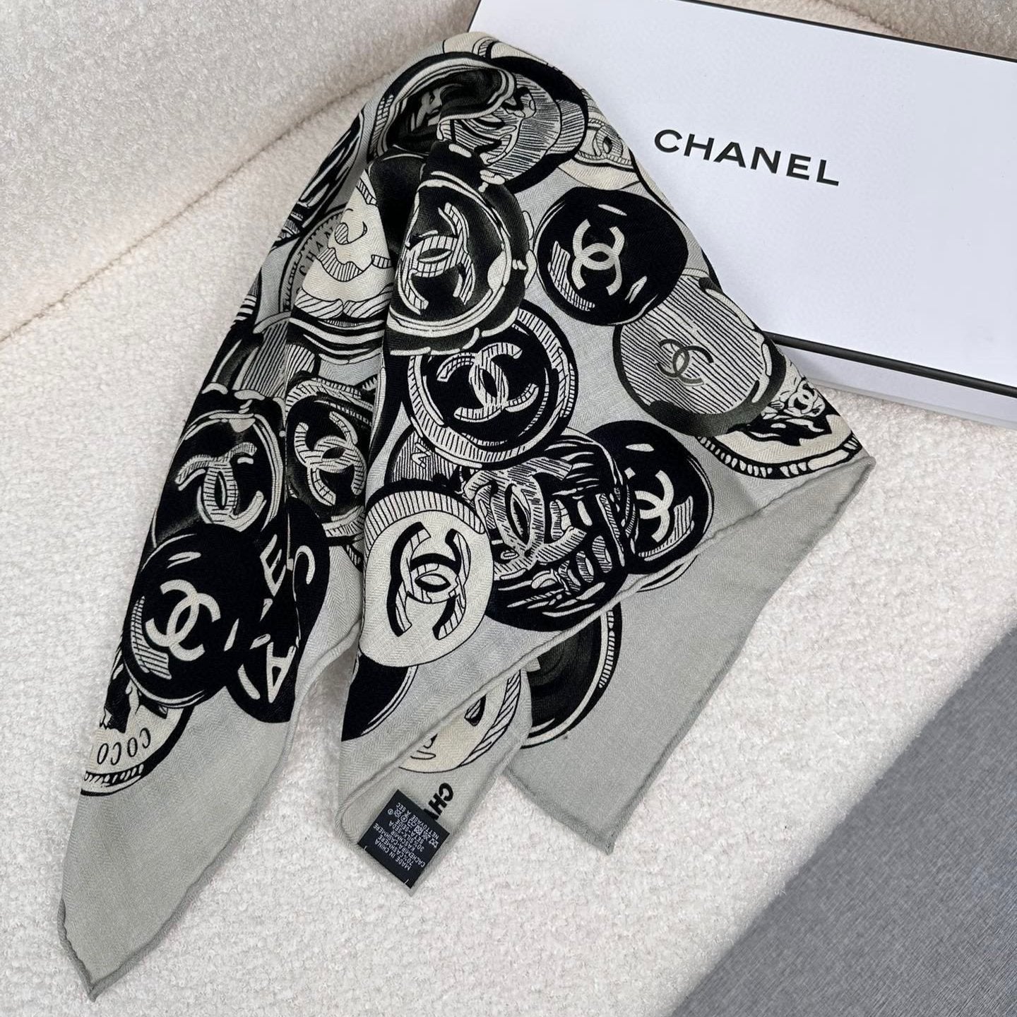 CC Square Scarf 140 CM In White Mix Black Silk 396374