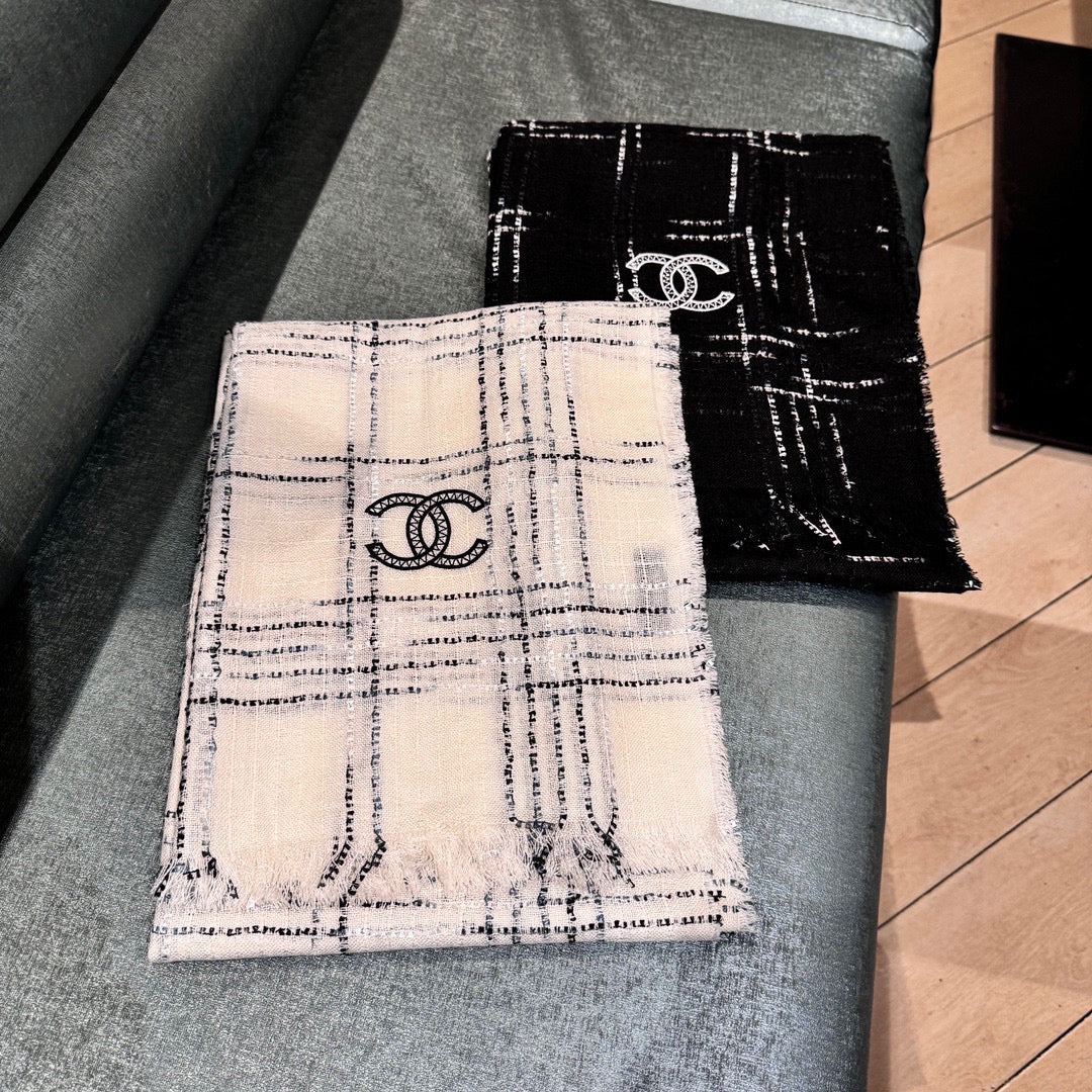 CC Scarf 180 CM In White Black Cashmere Silk 401133