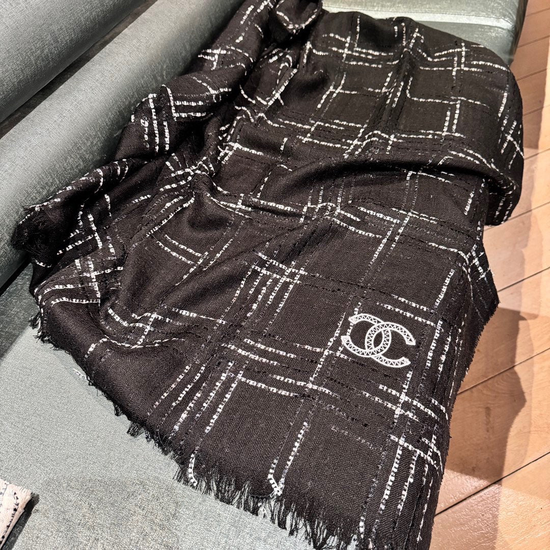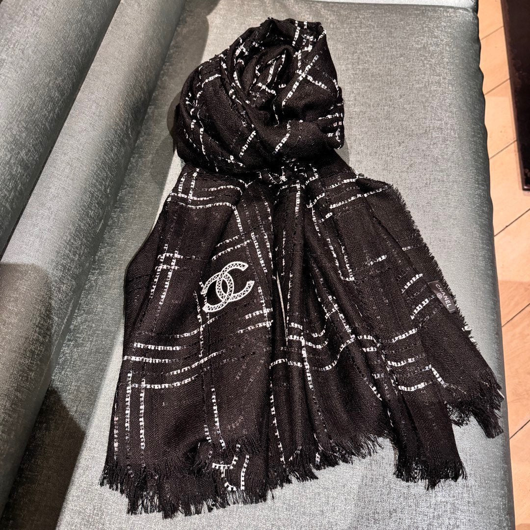 CC Scarf 180 CM In Black White Cashmere Silk 401134