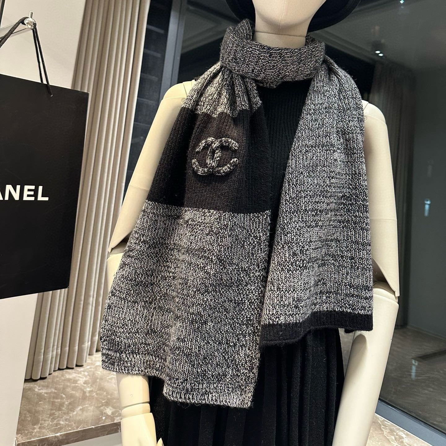 CC Scarf 190 CM In White Mix Black Cashmere And Wool 401998