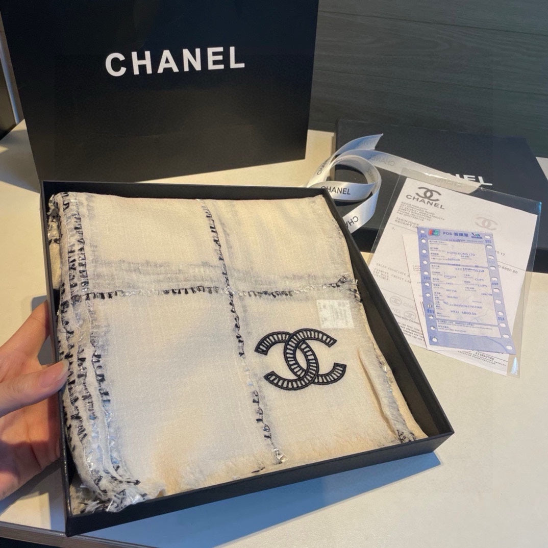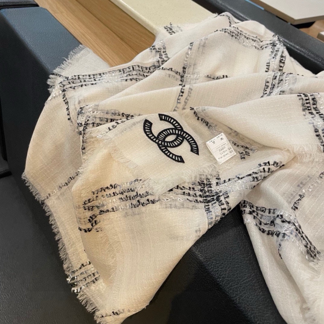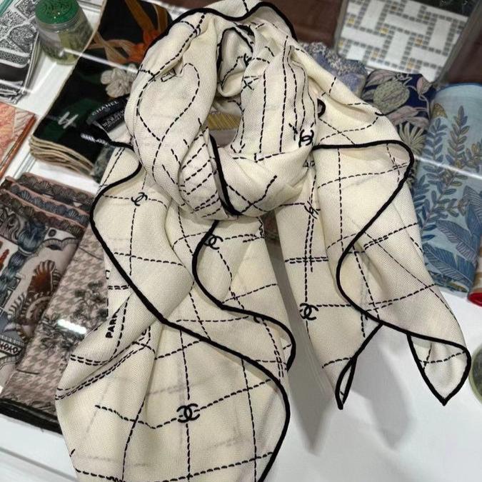 CC Scarf 185 CM In White Black Cashmere Silk 371904