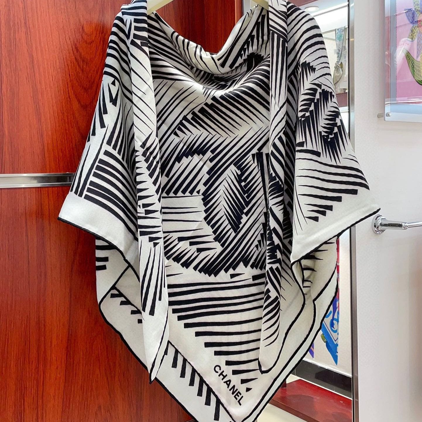 CC Square Scarf 140 CM In Black White Cashmere Mix Silk 382617