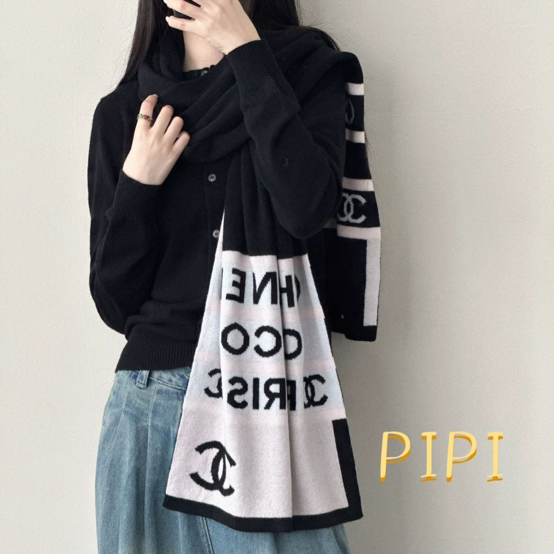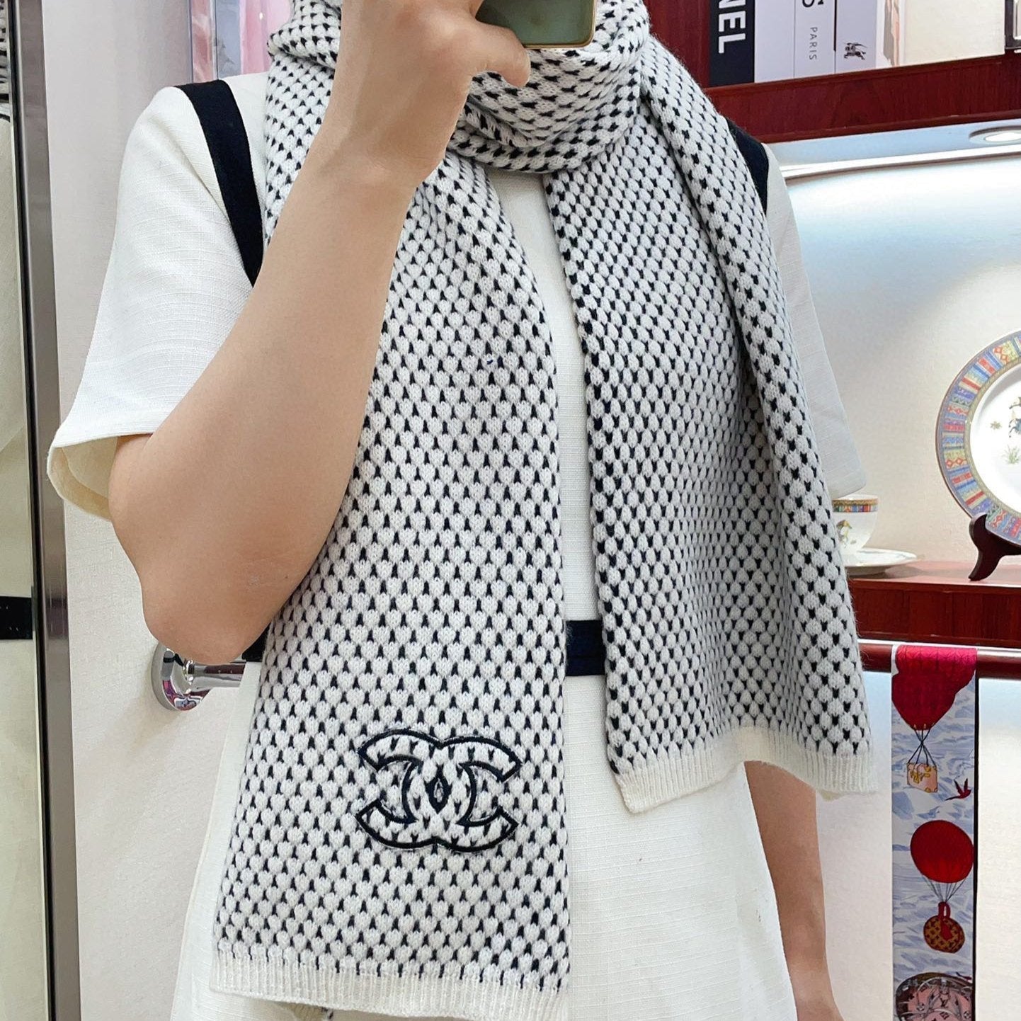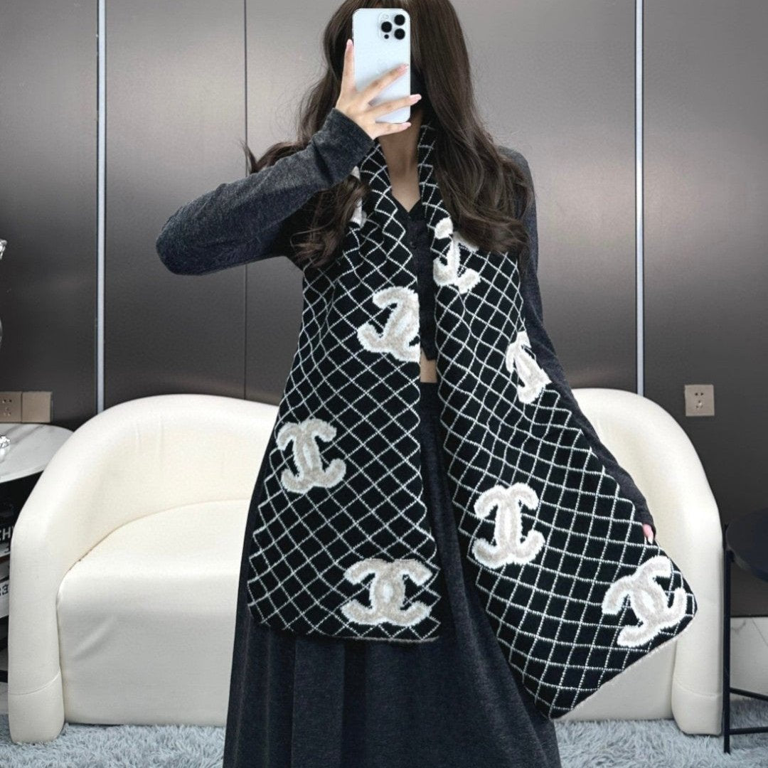 CC Scarf 180 CM In Black Mix White Cashmere 383979