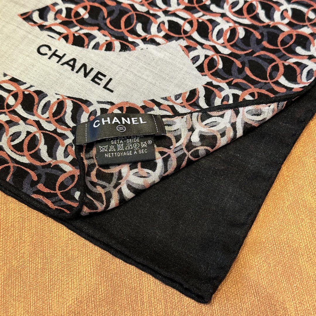 CC Square Scarf 70 CM In Black Mix White Ivory Camellia Cashmere And Silk 367381