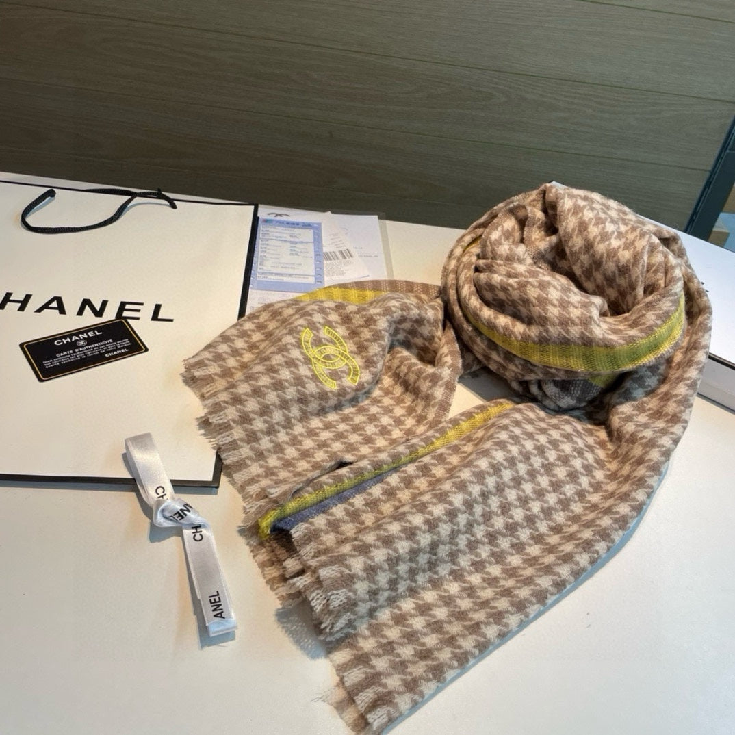 CC Scarf 190 CM In Brown White Mix Yellow Serrated Shape Cashmere 387911