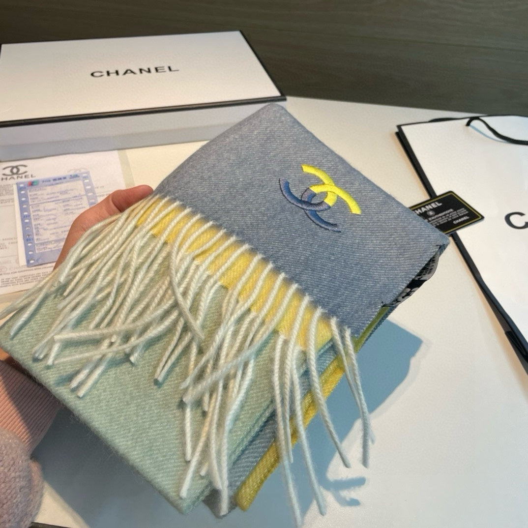 CC Scarf 180 CM In Black Blue Mix White Yellow Cashmere 387917