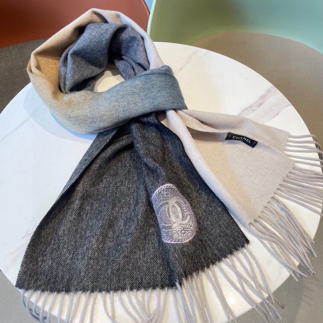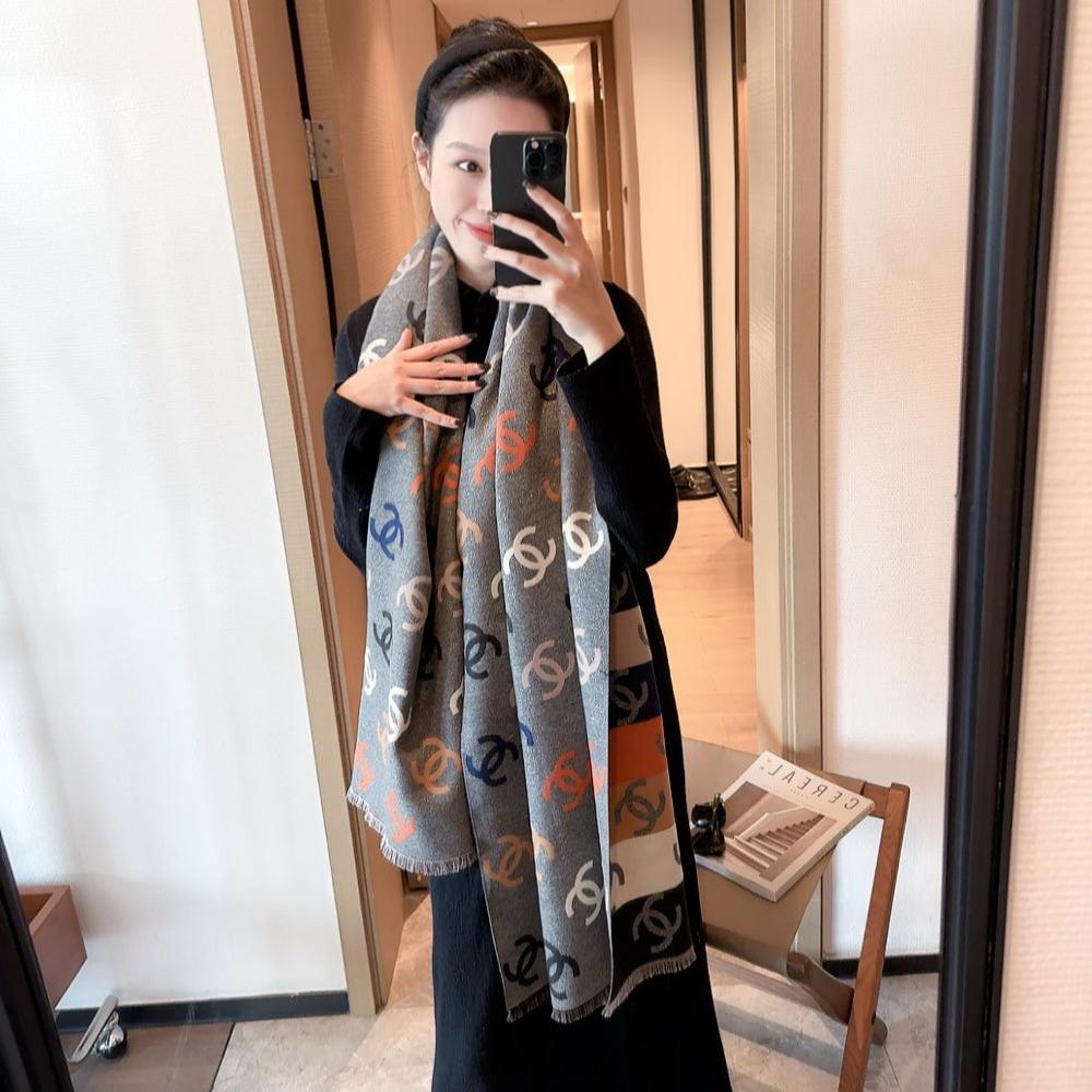 CC Scarf 180 CM In Black Blue Mix Grey Beige Cashmere 381207