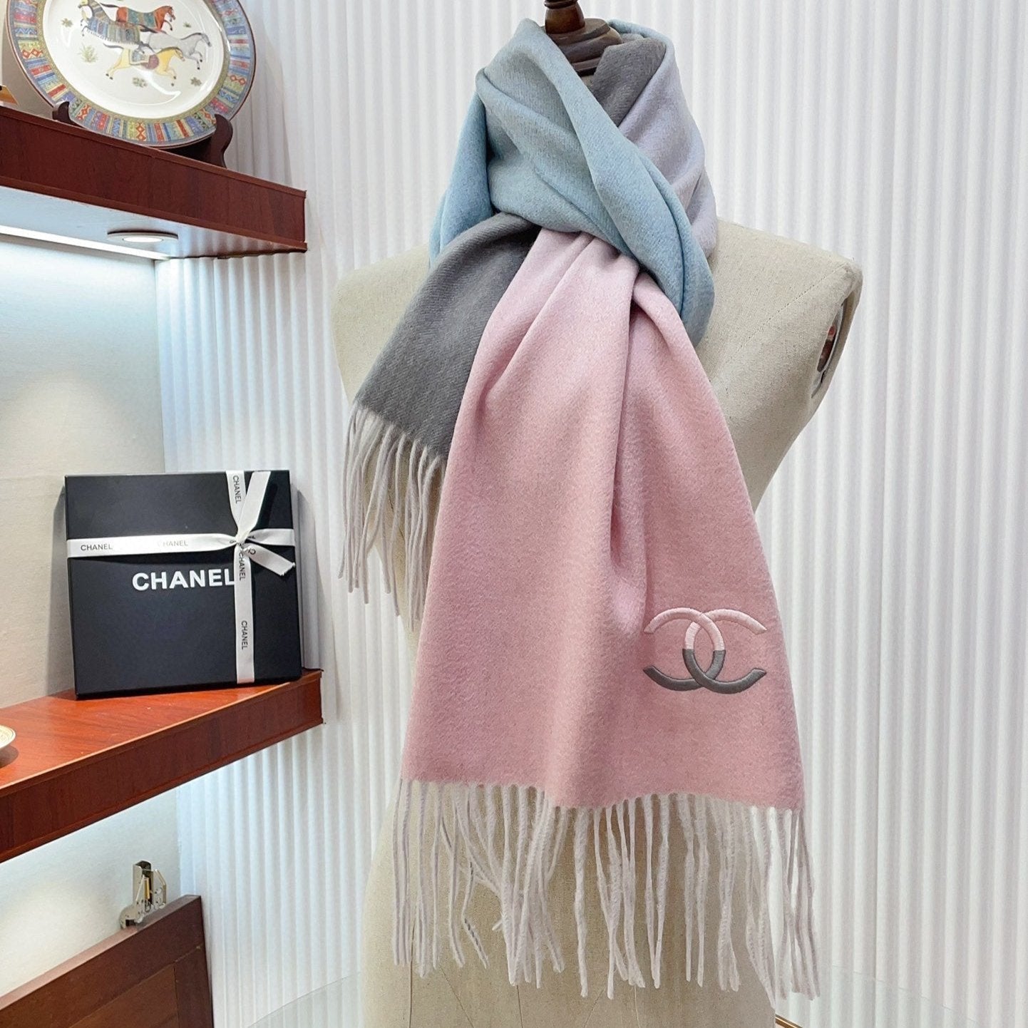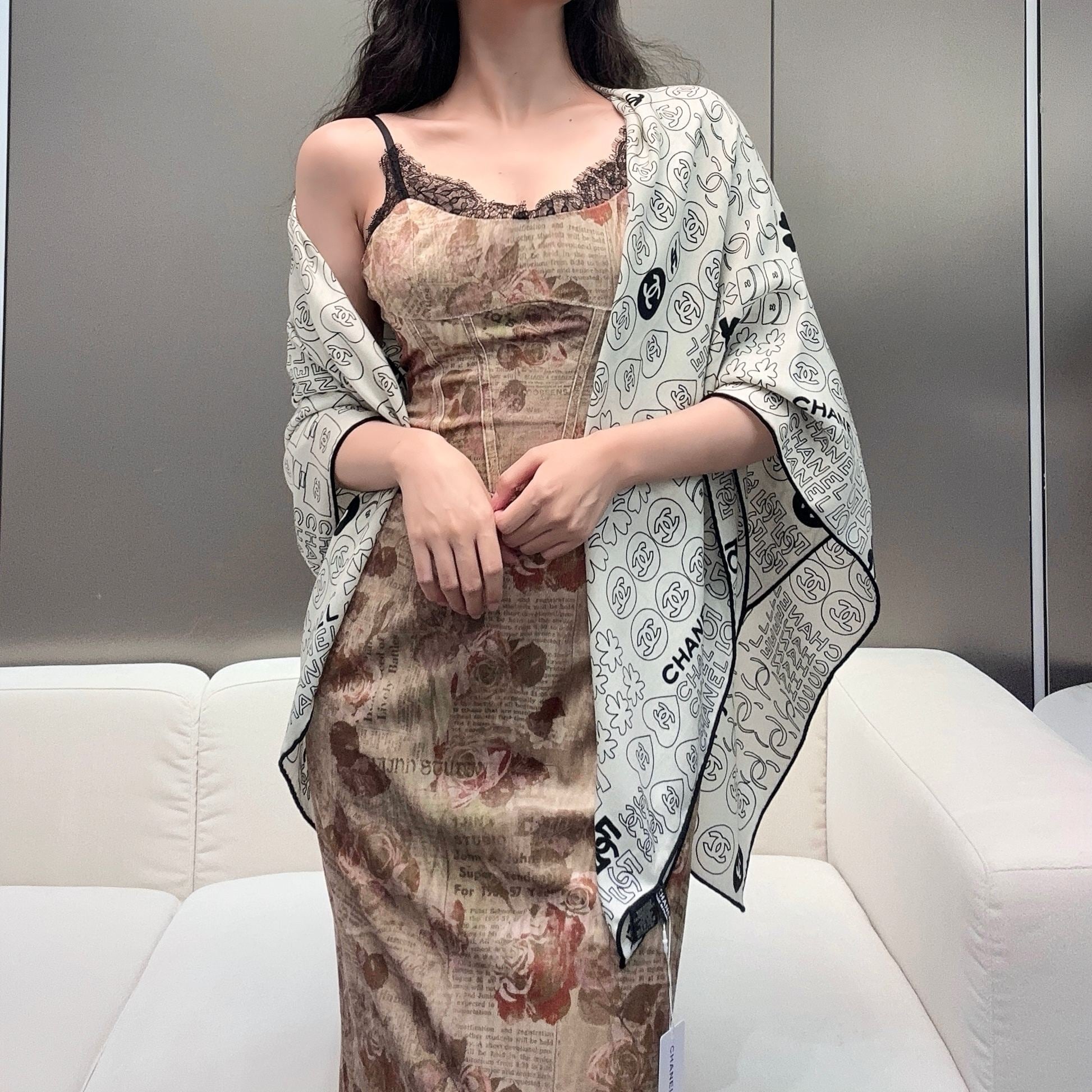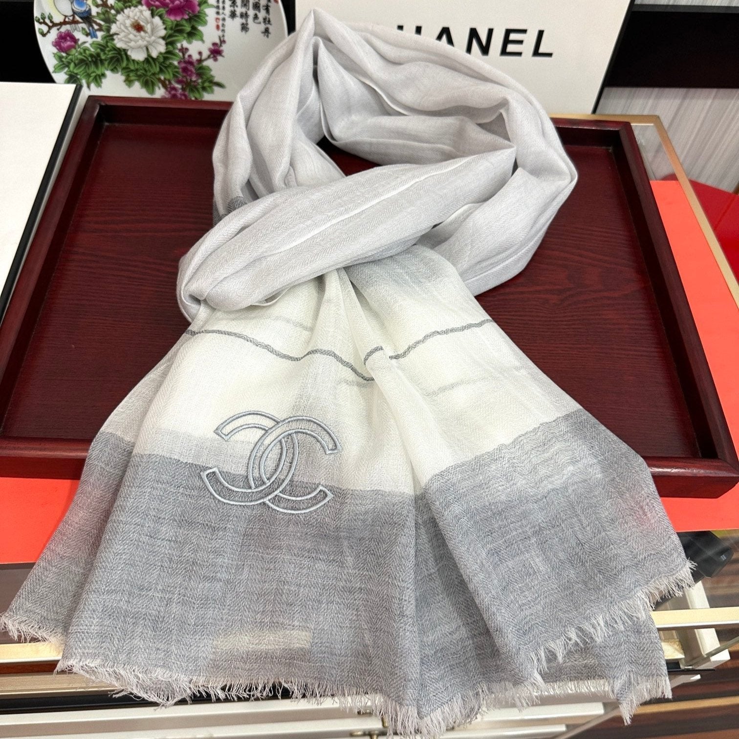 CC Scarf 190CM In Grey White Cashmere 424835