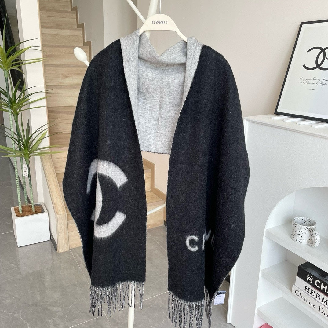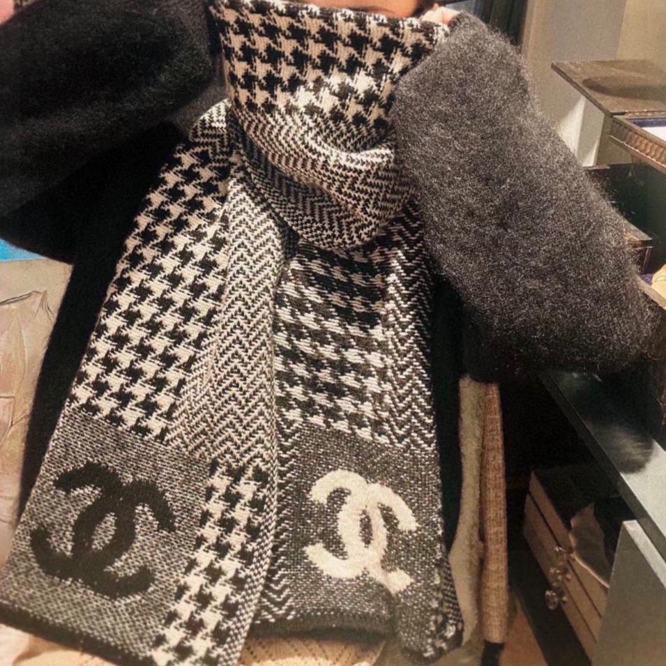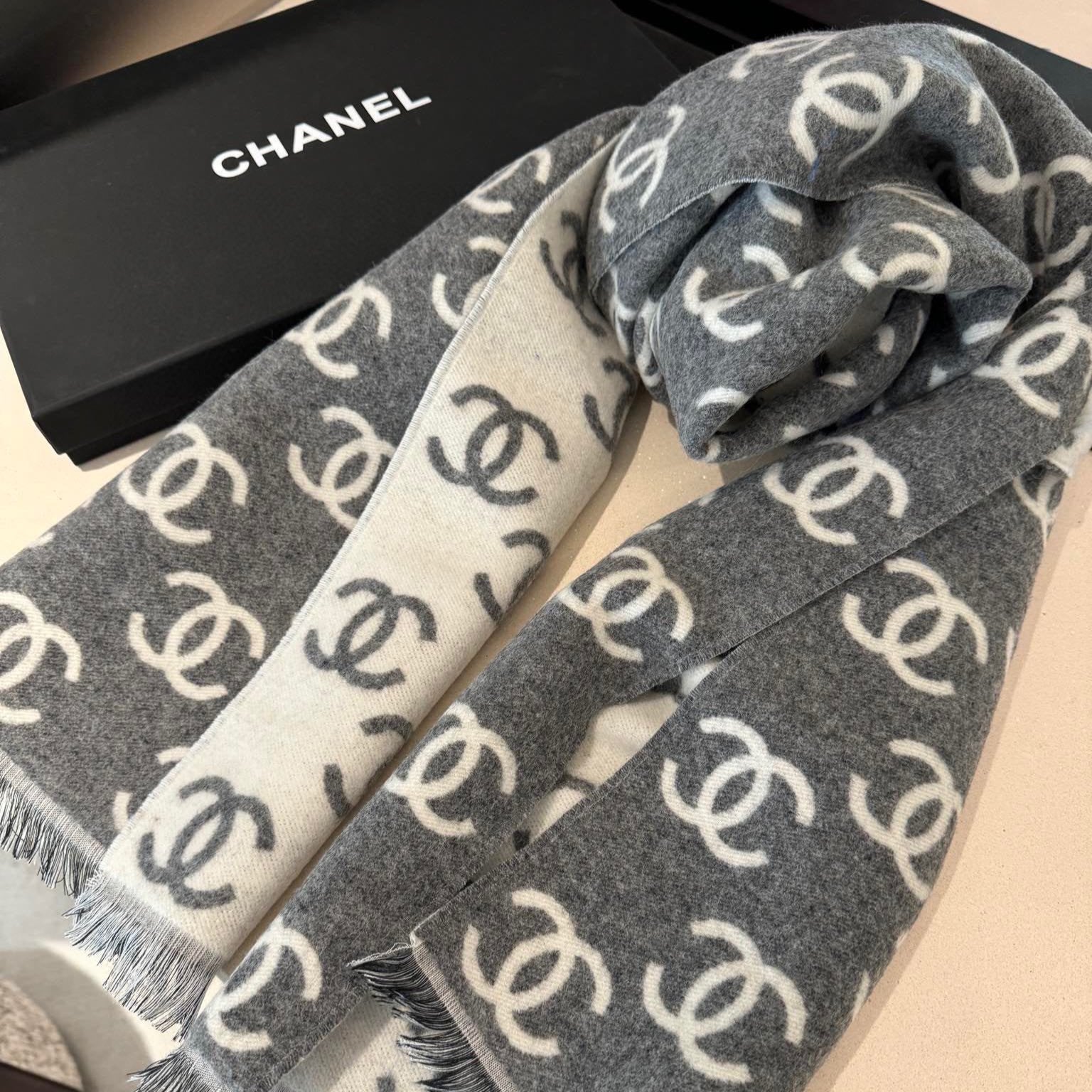CC Scarf 180 CM In Black Mix Light Grey Print Logo Wool And Cashmere 359270
