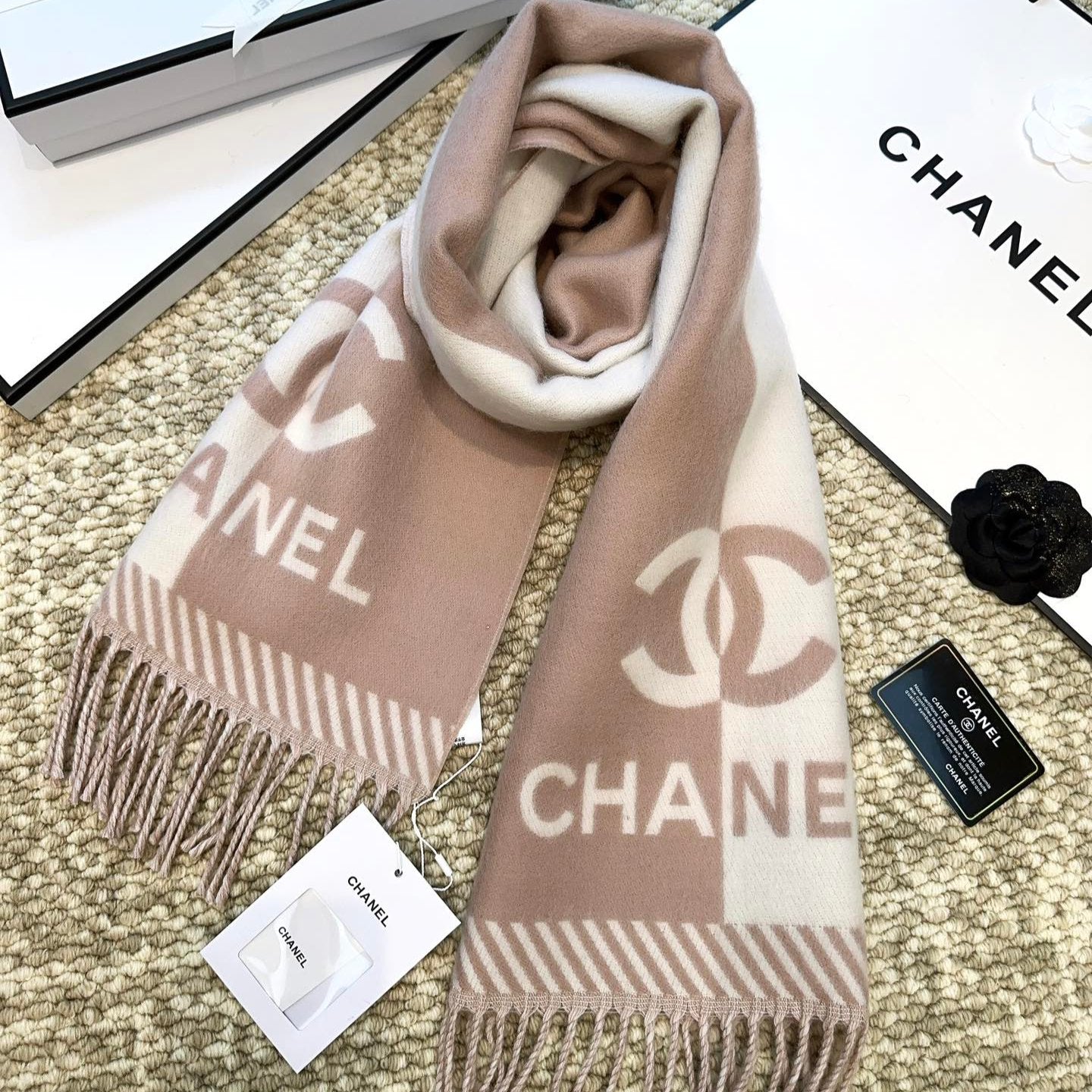 CC Scarf 180 CM In Dark Brown Mix Beige Cashmere 422763