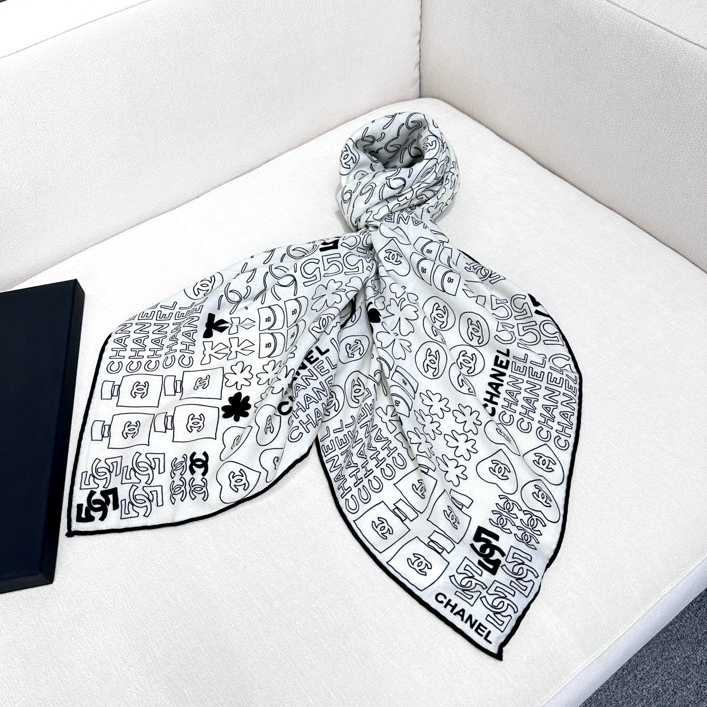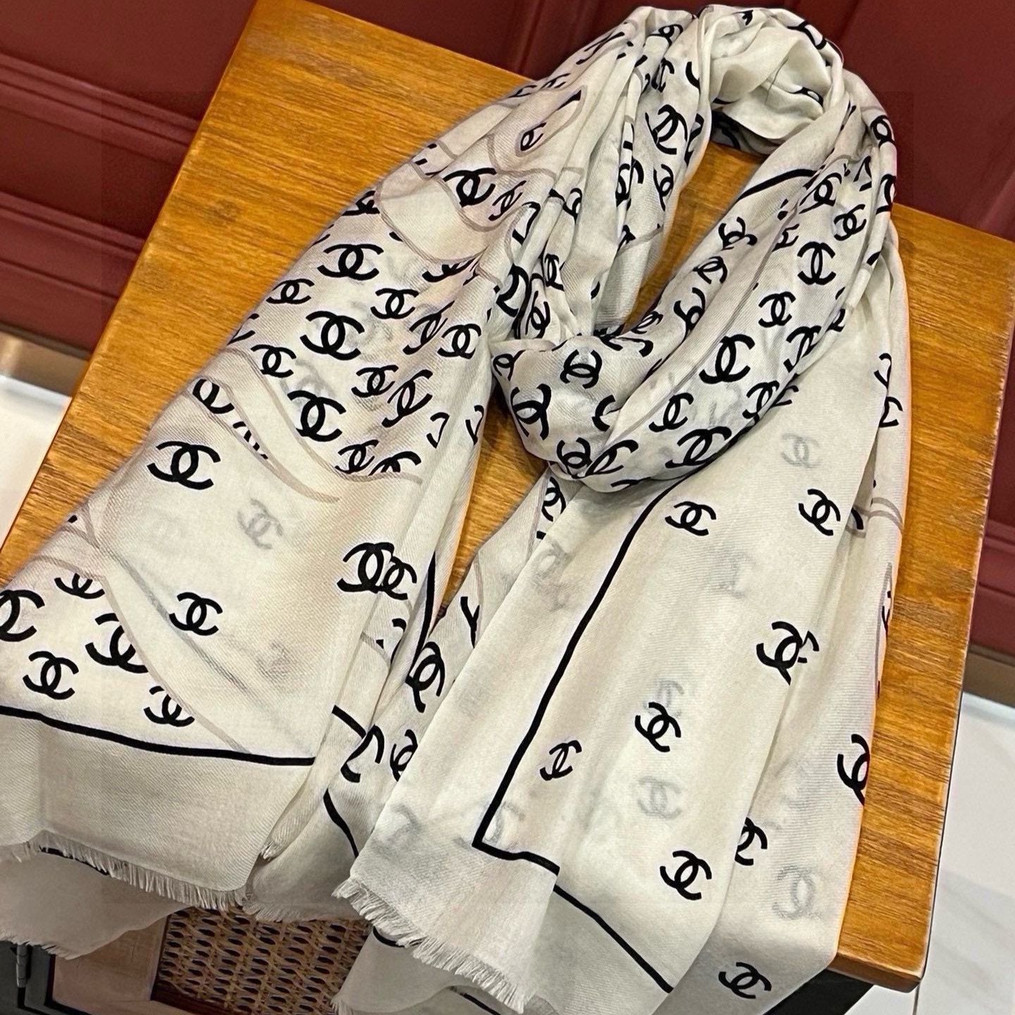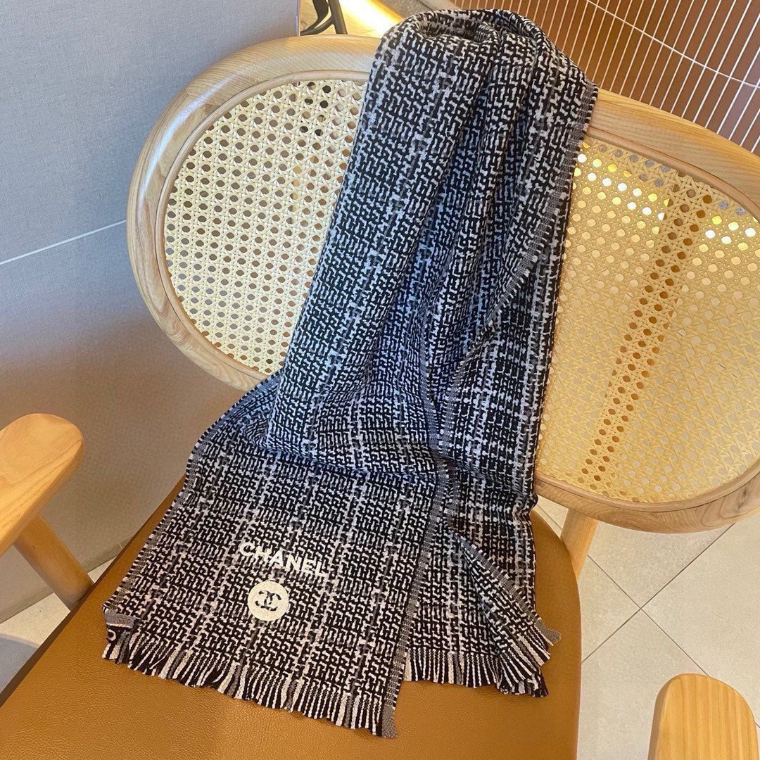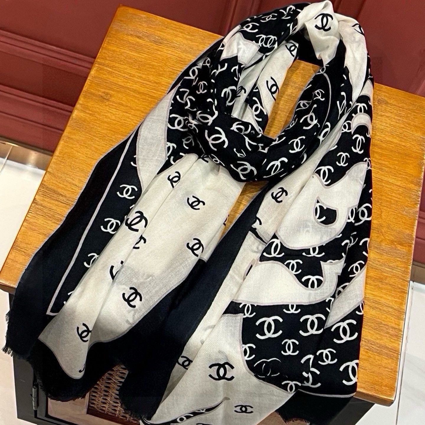 CC Scarf 178CM In Black White Mulberry Silk Mix Wool 424845