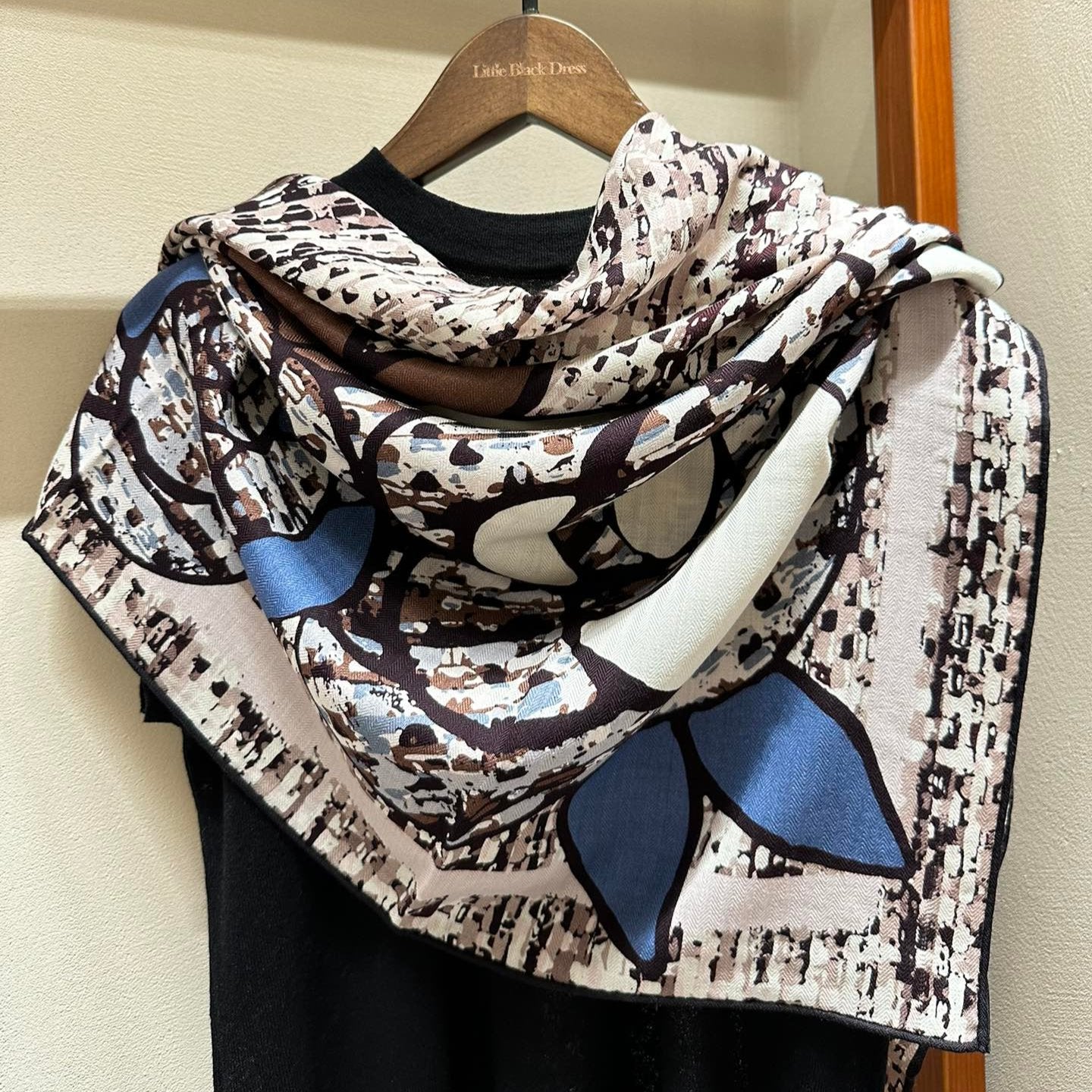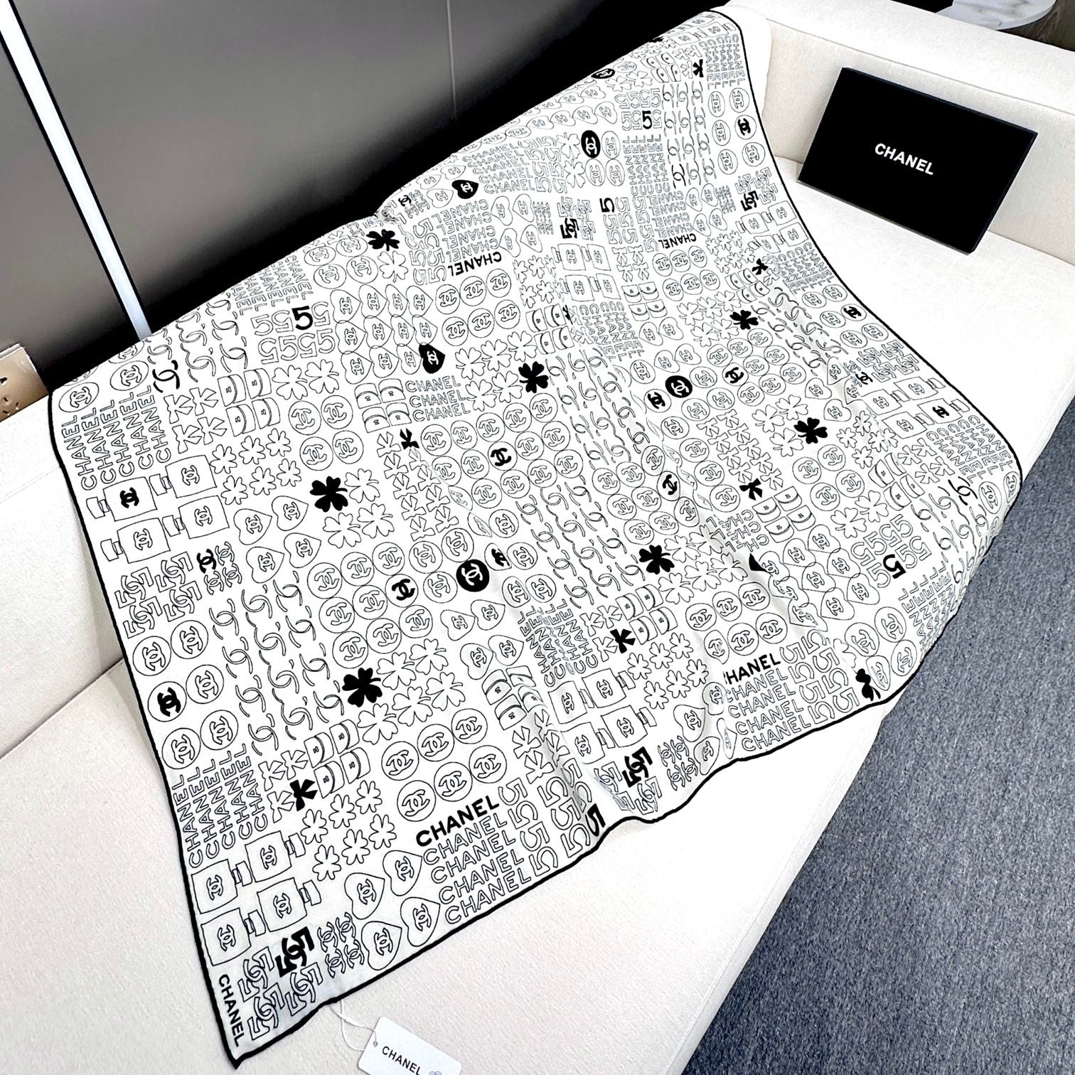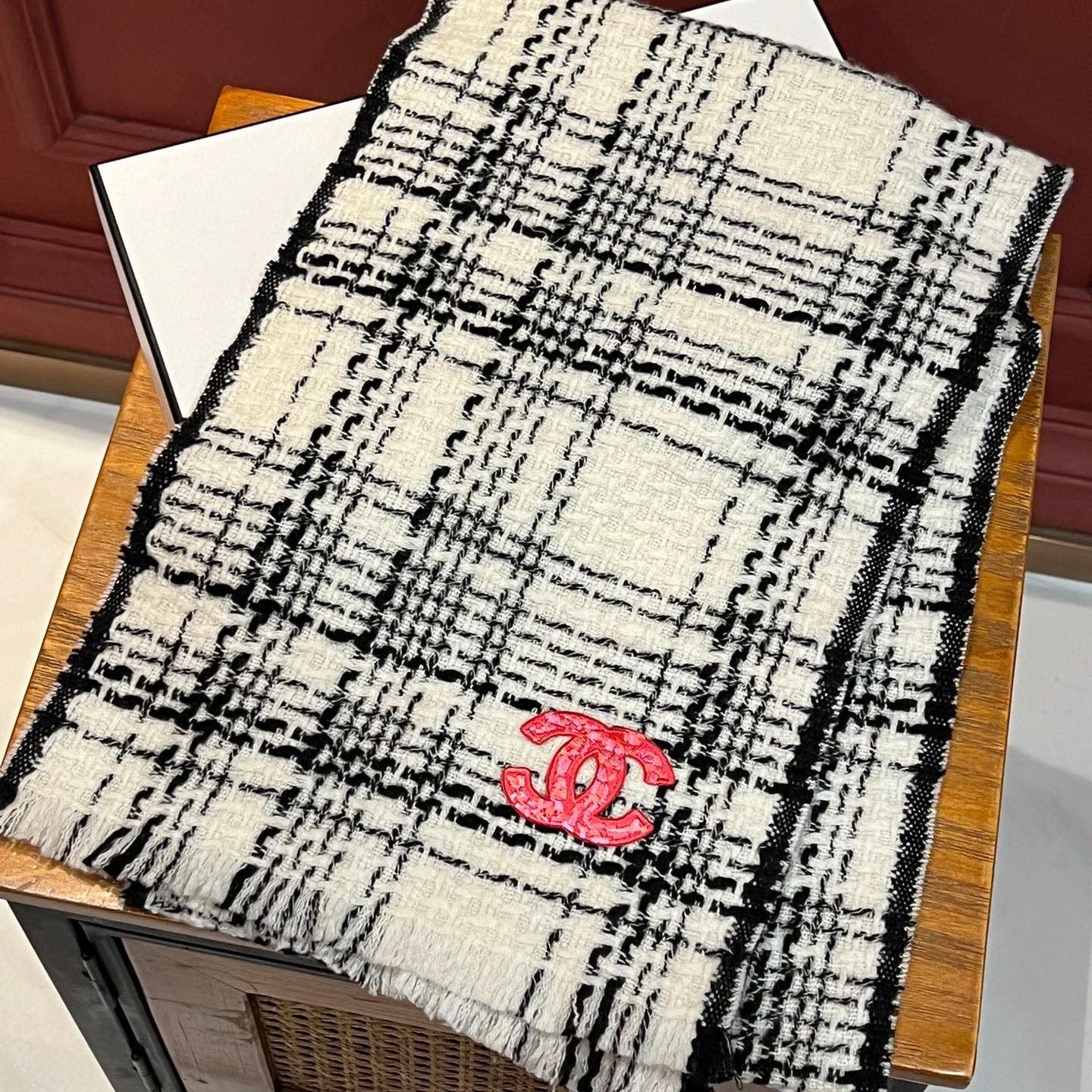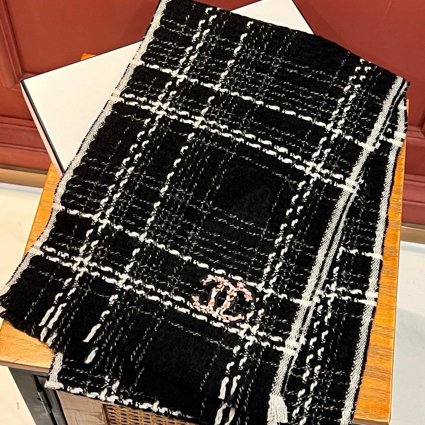 CC Scarf 178CM In Black White Mulberry Silk Mix Wool 424845