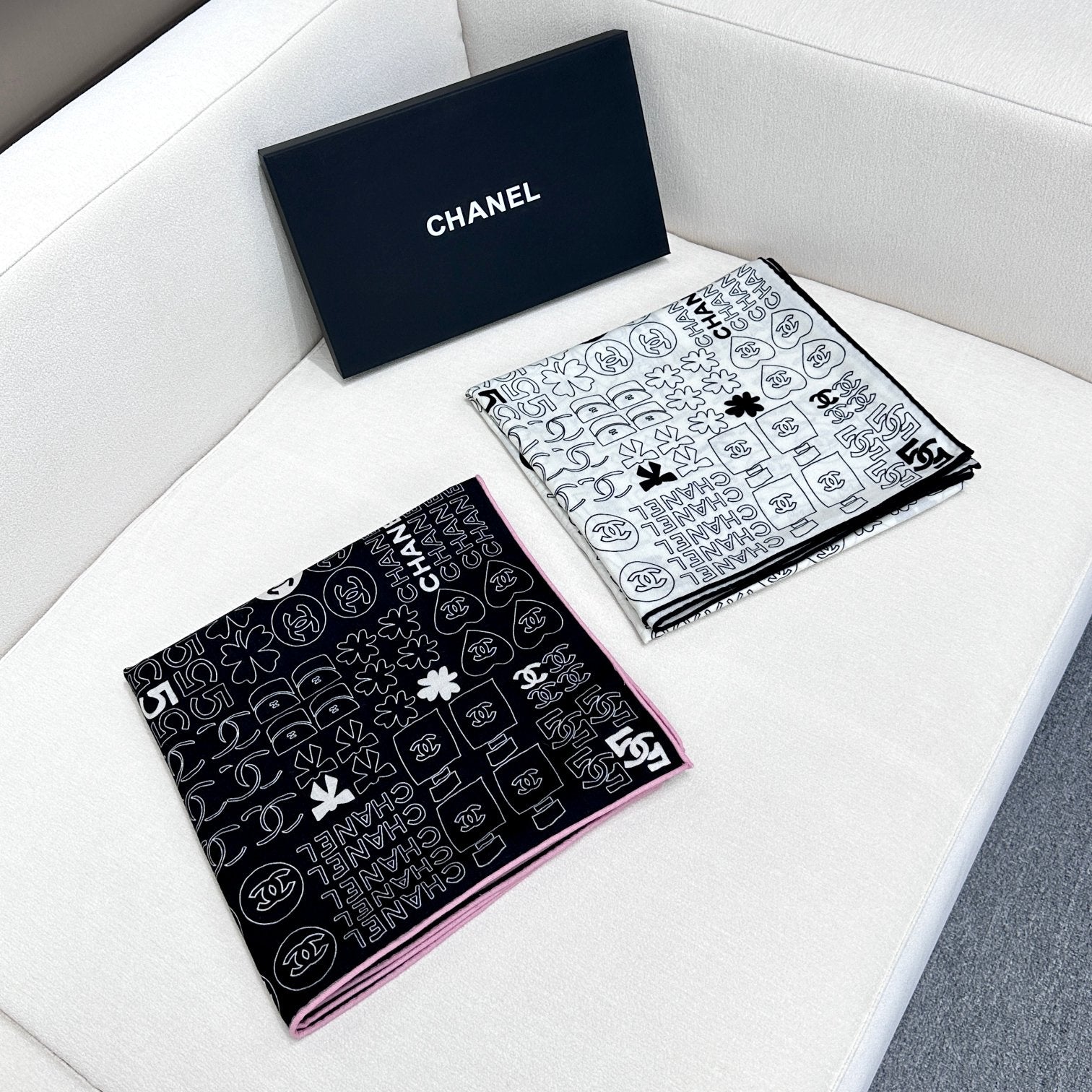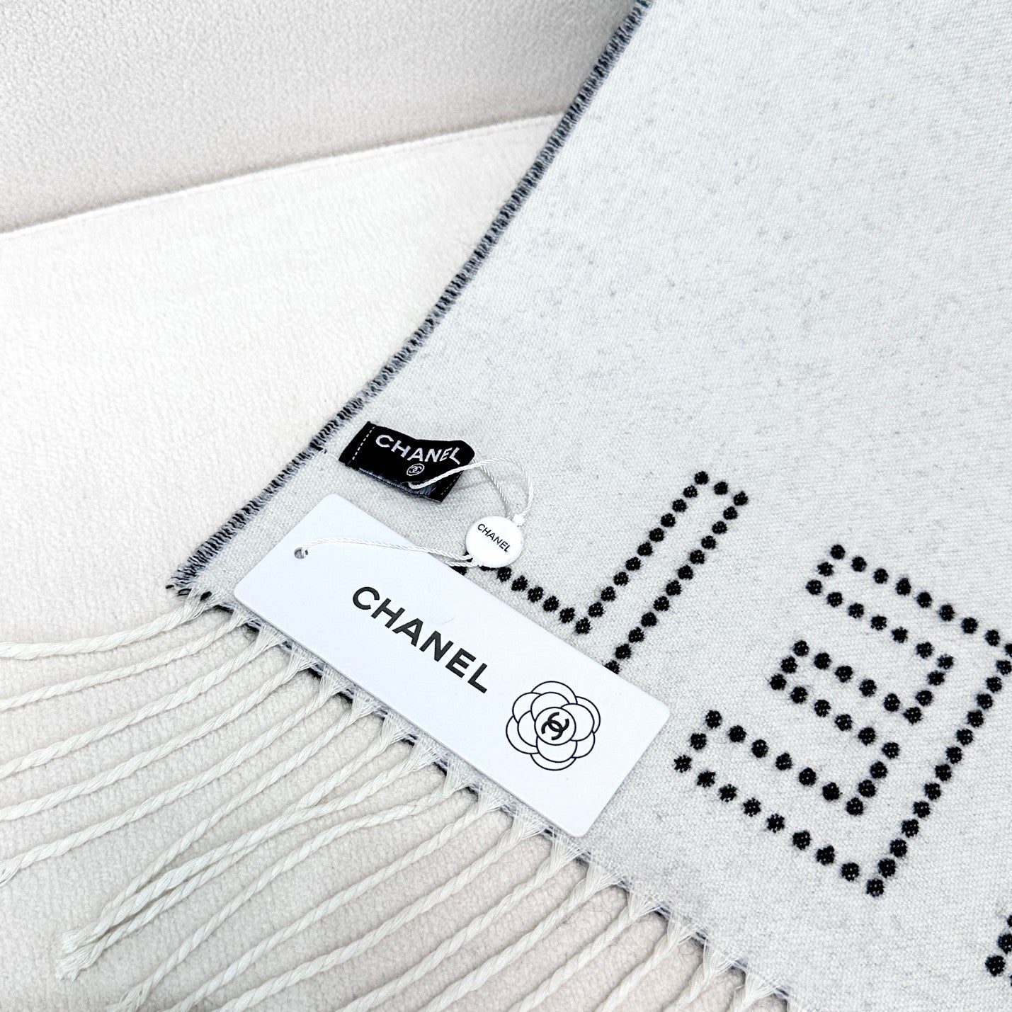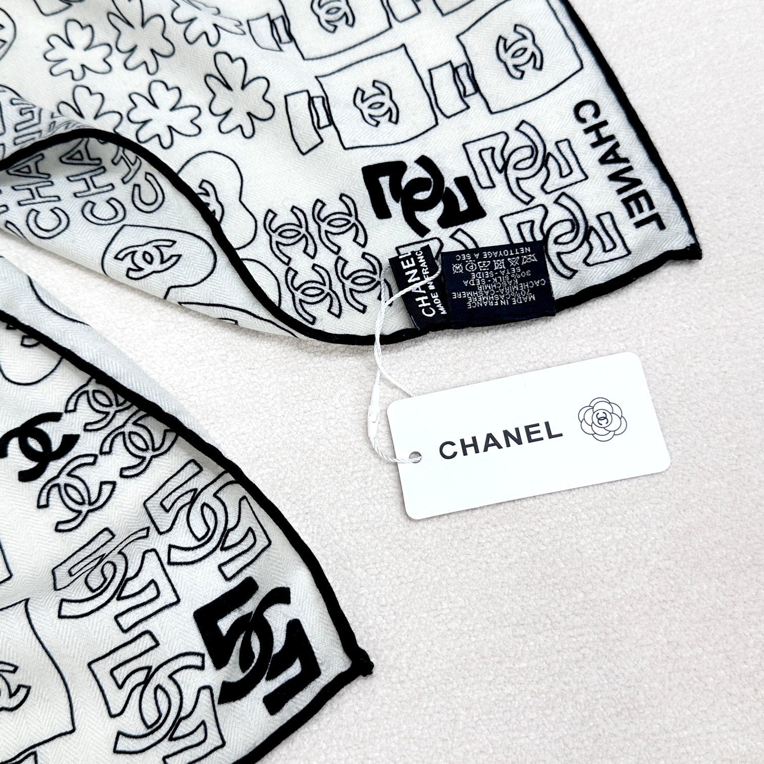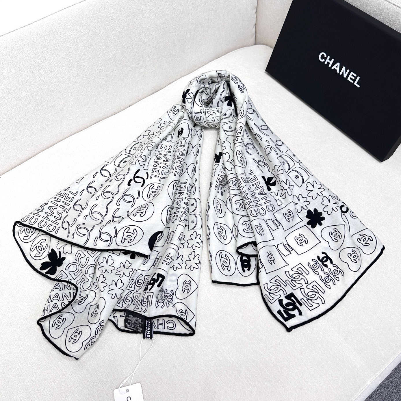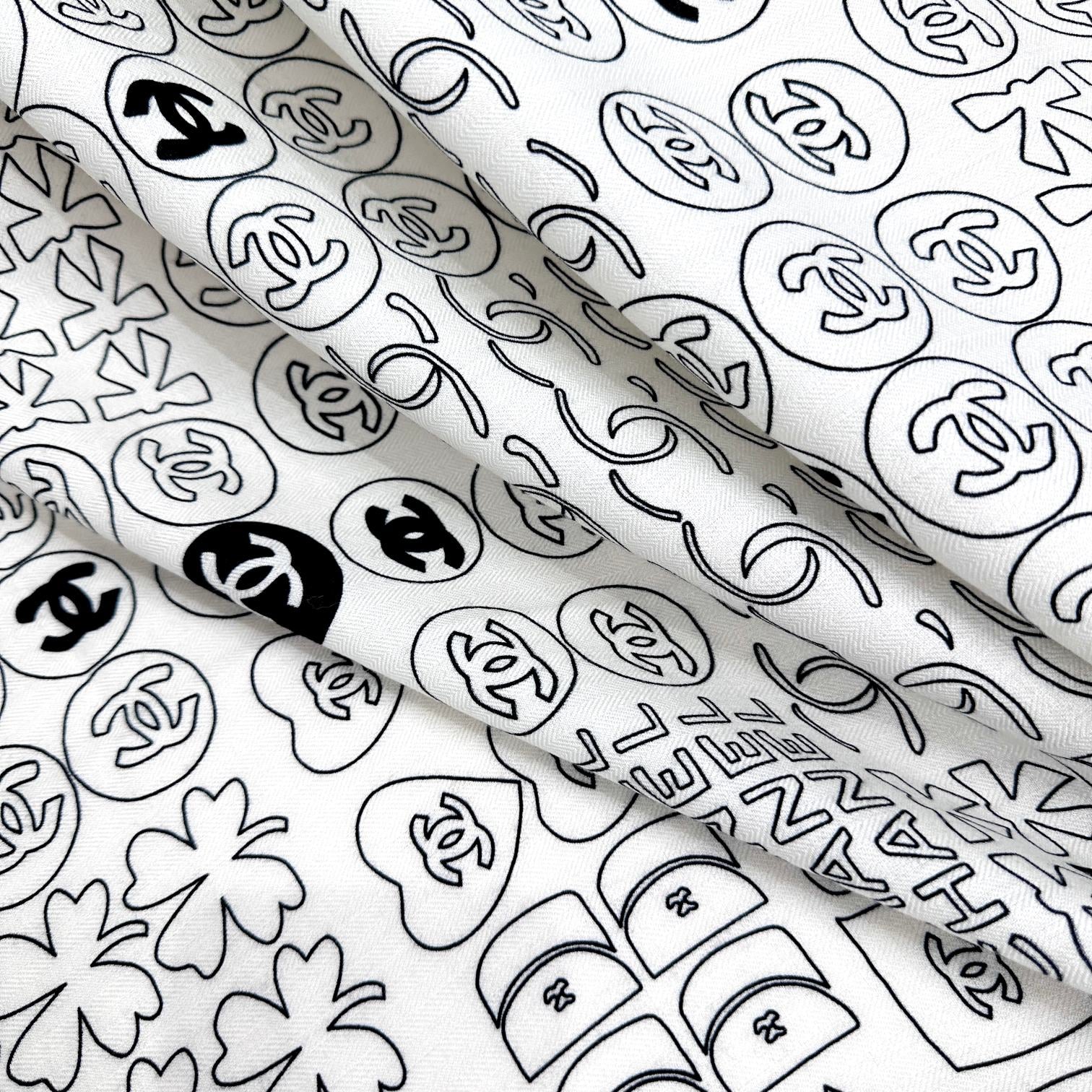 CC Scarf 200 CM In White With Black Logo Cashmere 363602