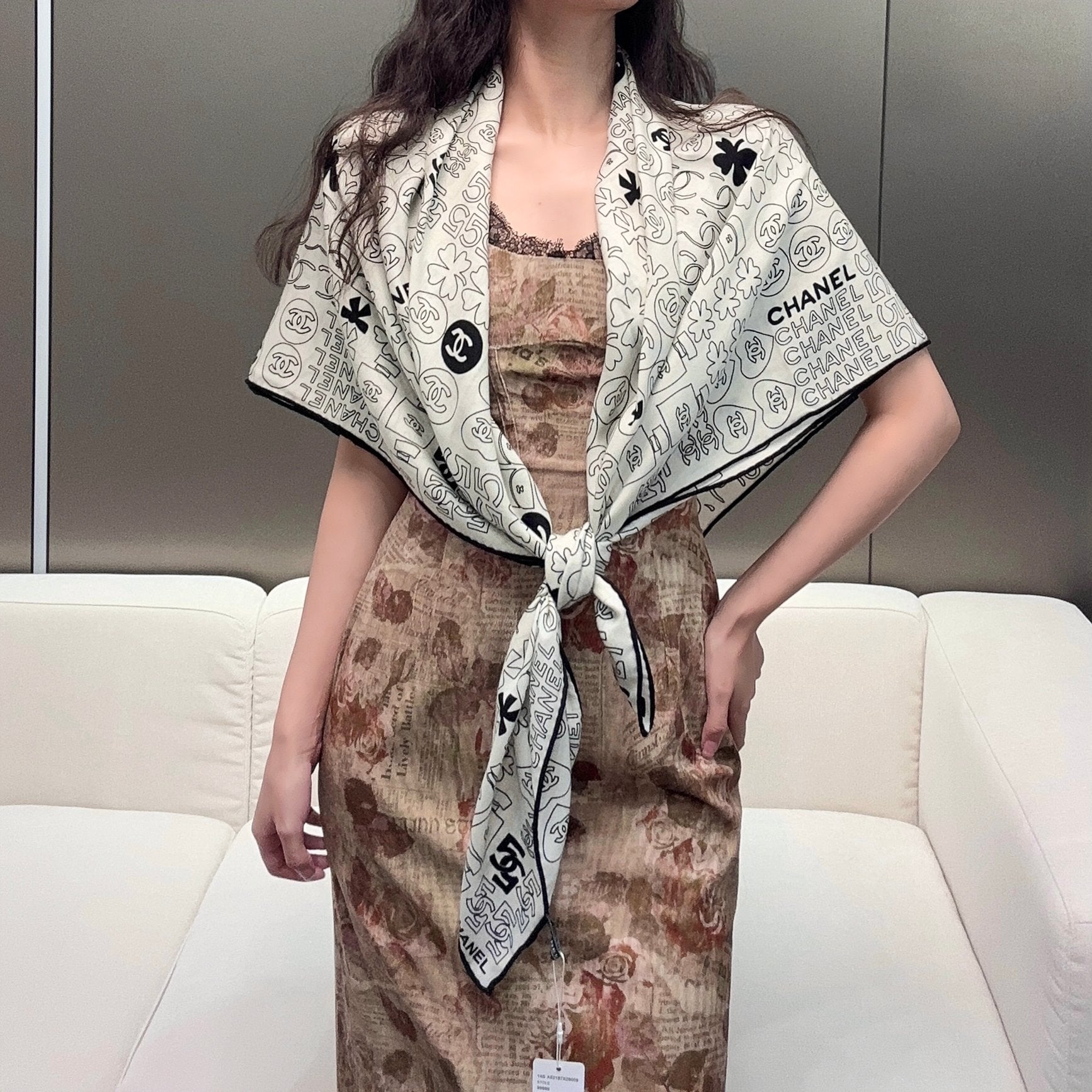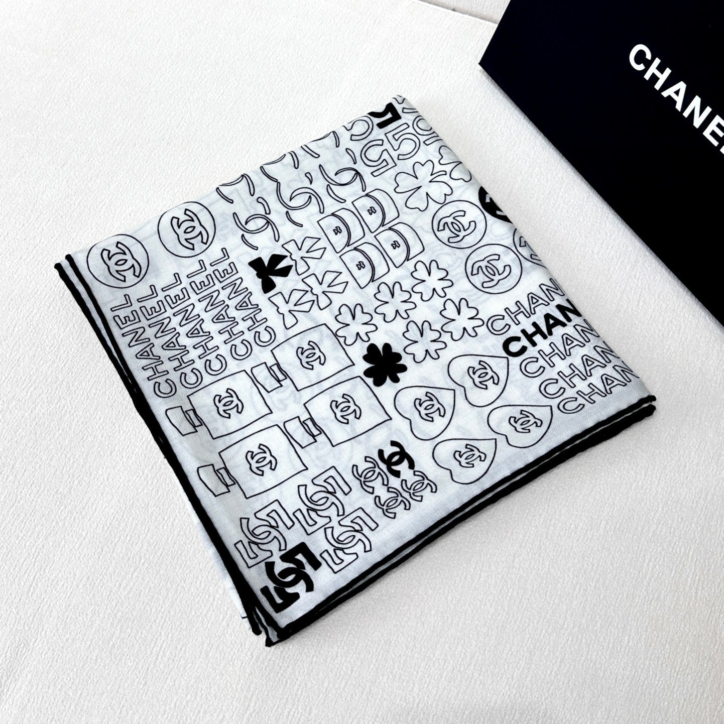 CC Square Scarf 140 CM In White Black Silk 422757