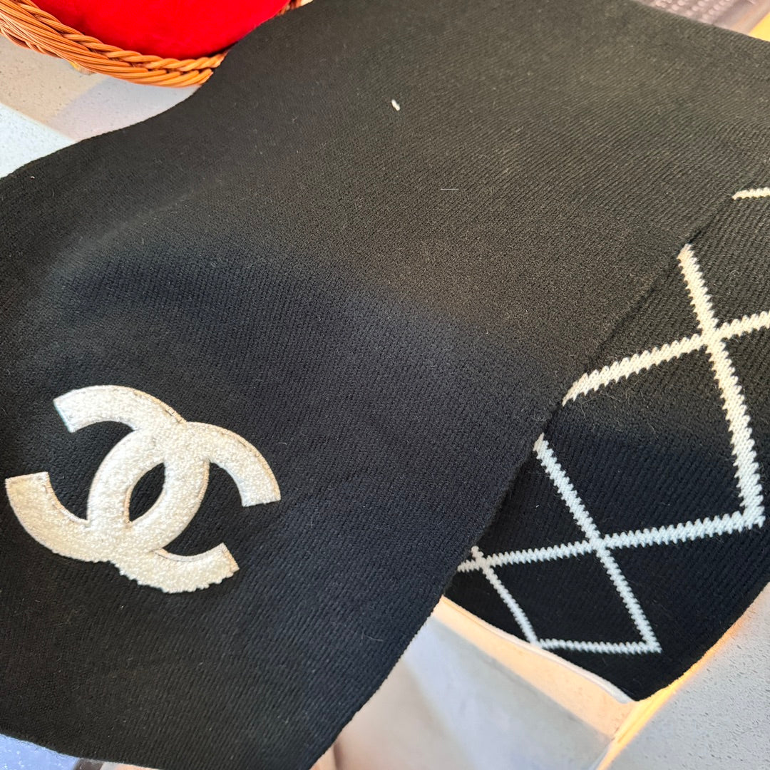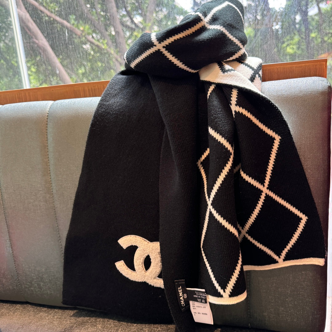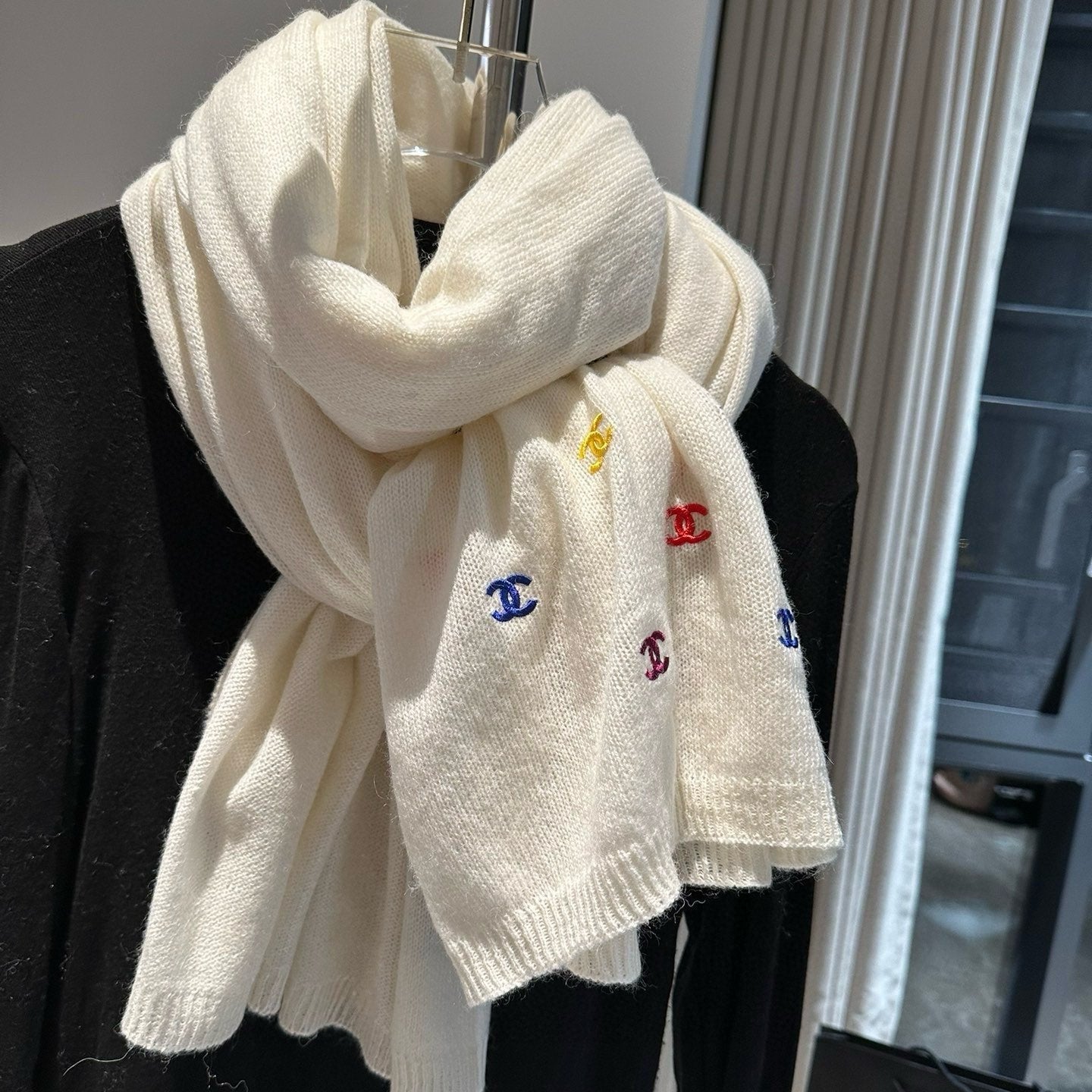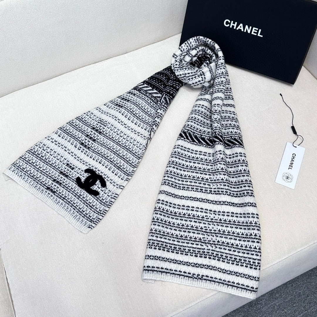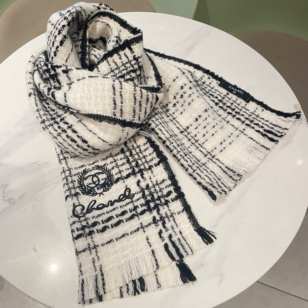 CC Scarf 195 CM White Mix Black Cashmere And Wool 418442