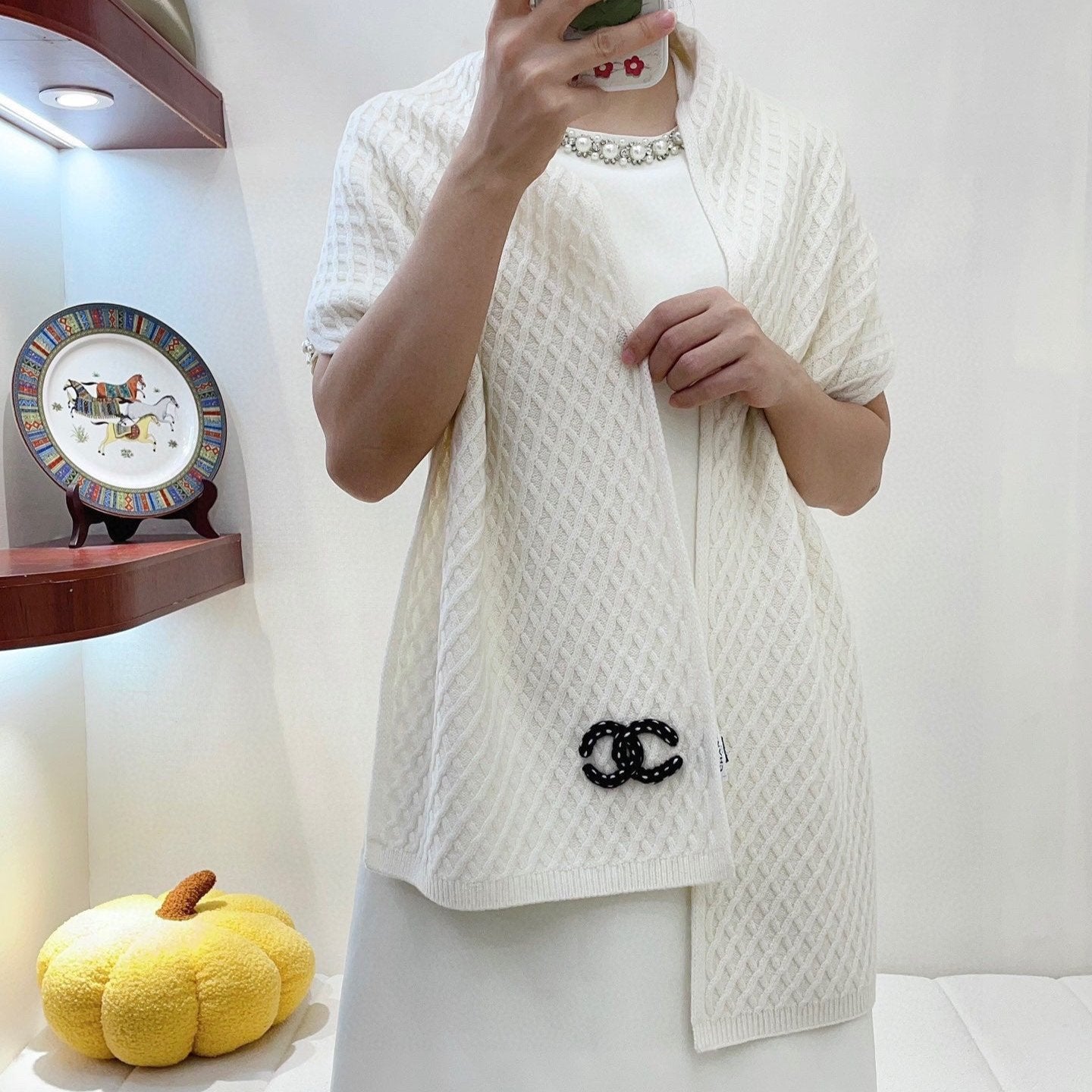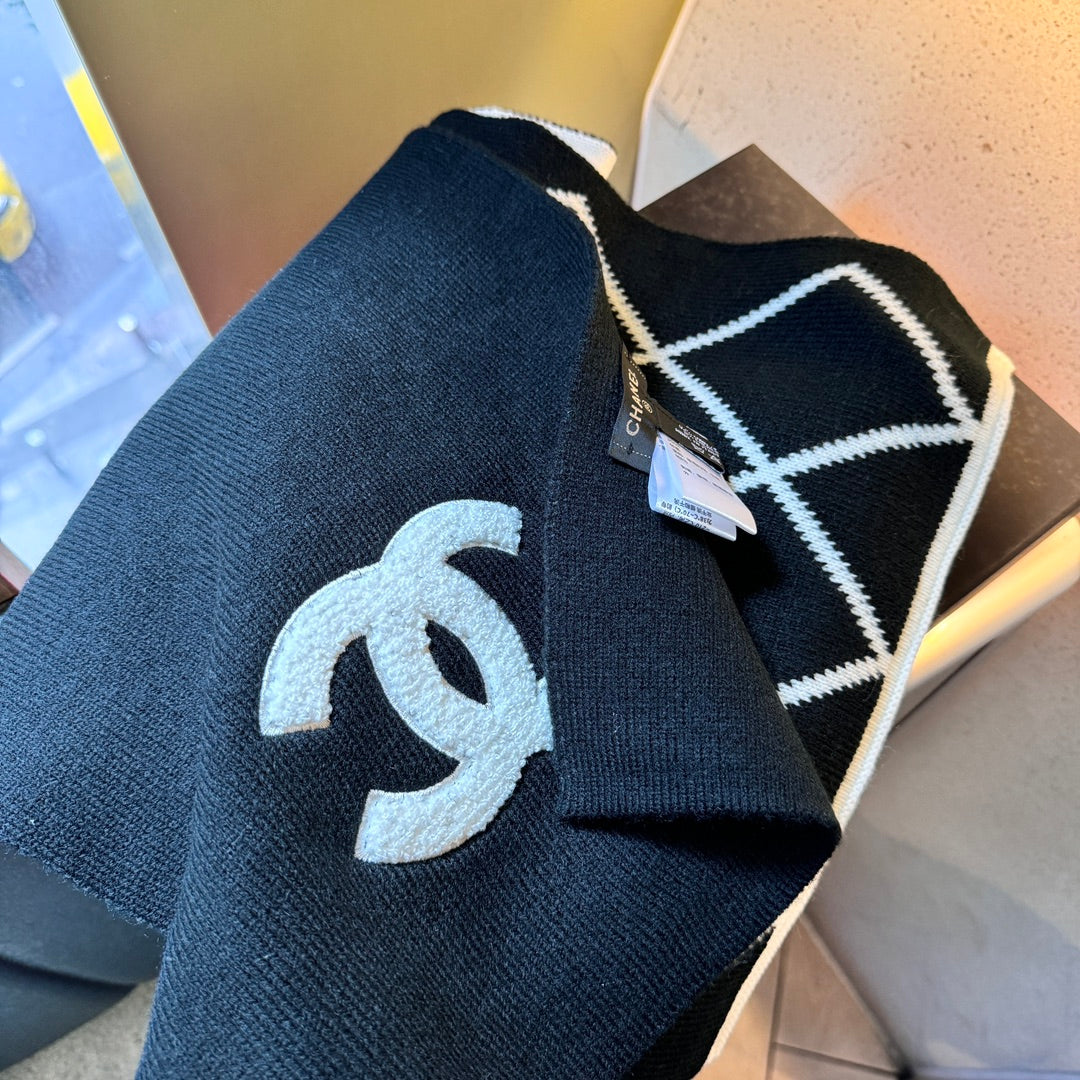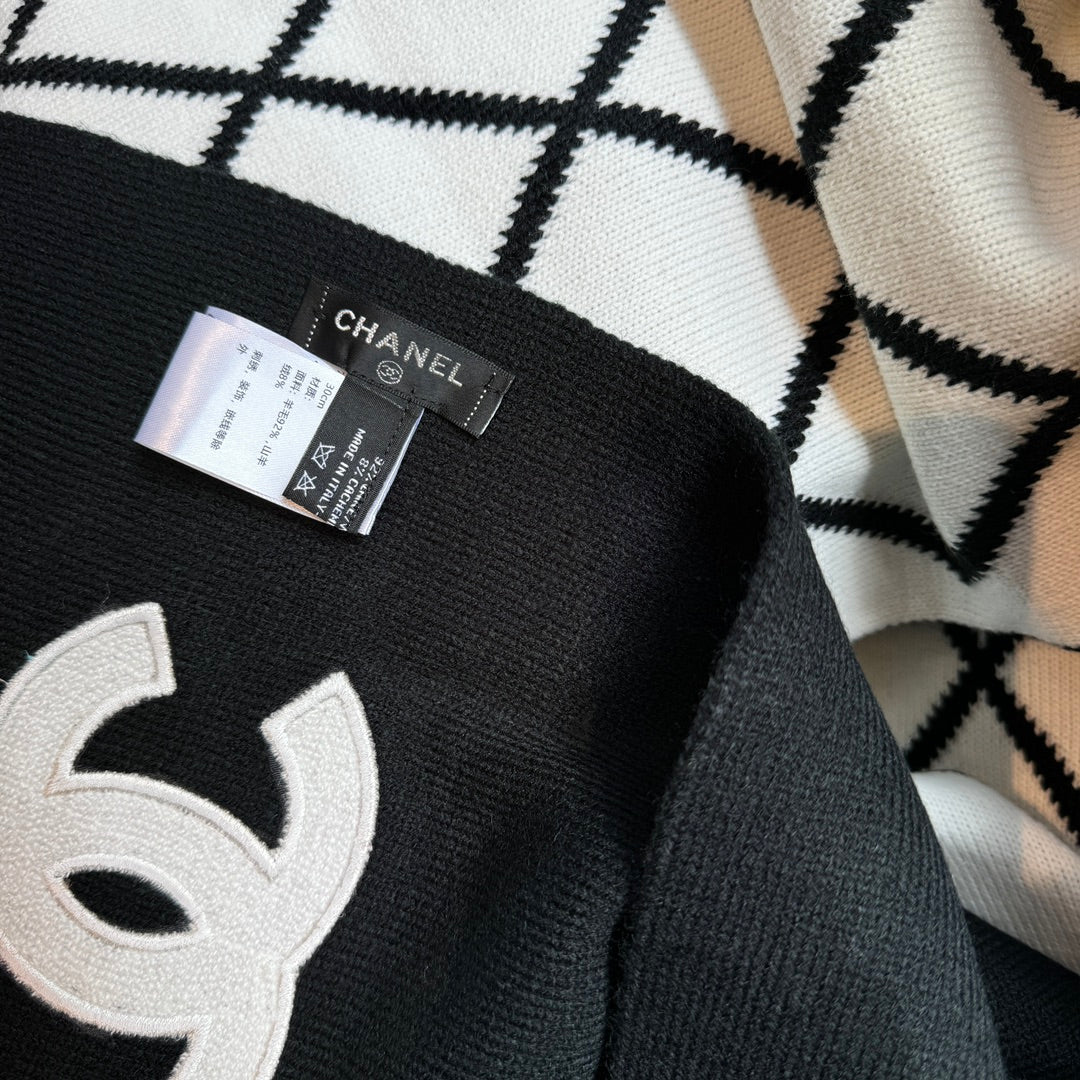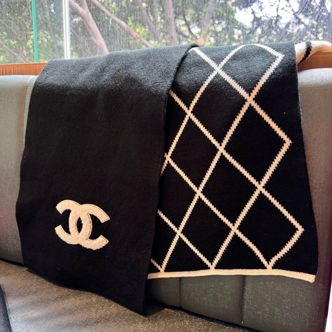 CC Scarf 195 CM White Mix Black Cashmere And Wool 418442