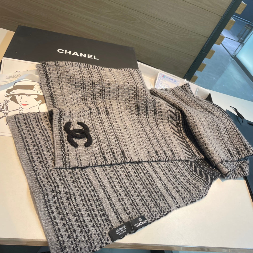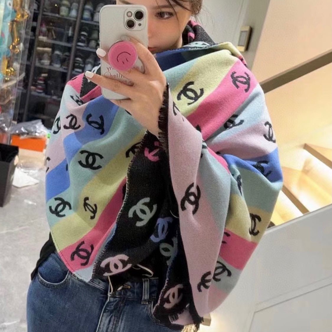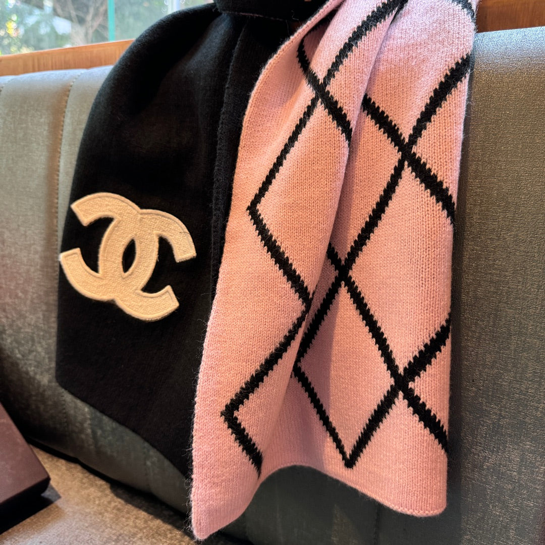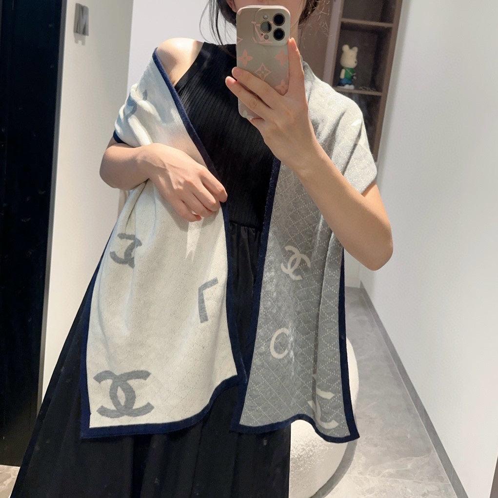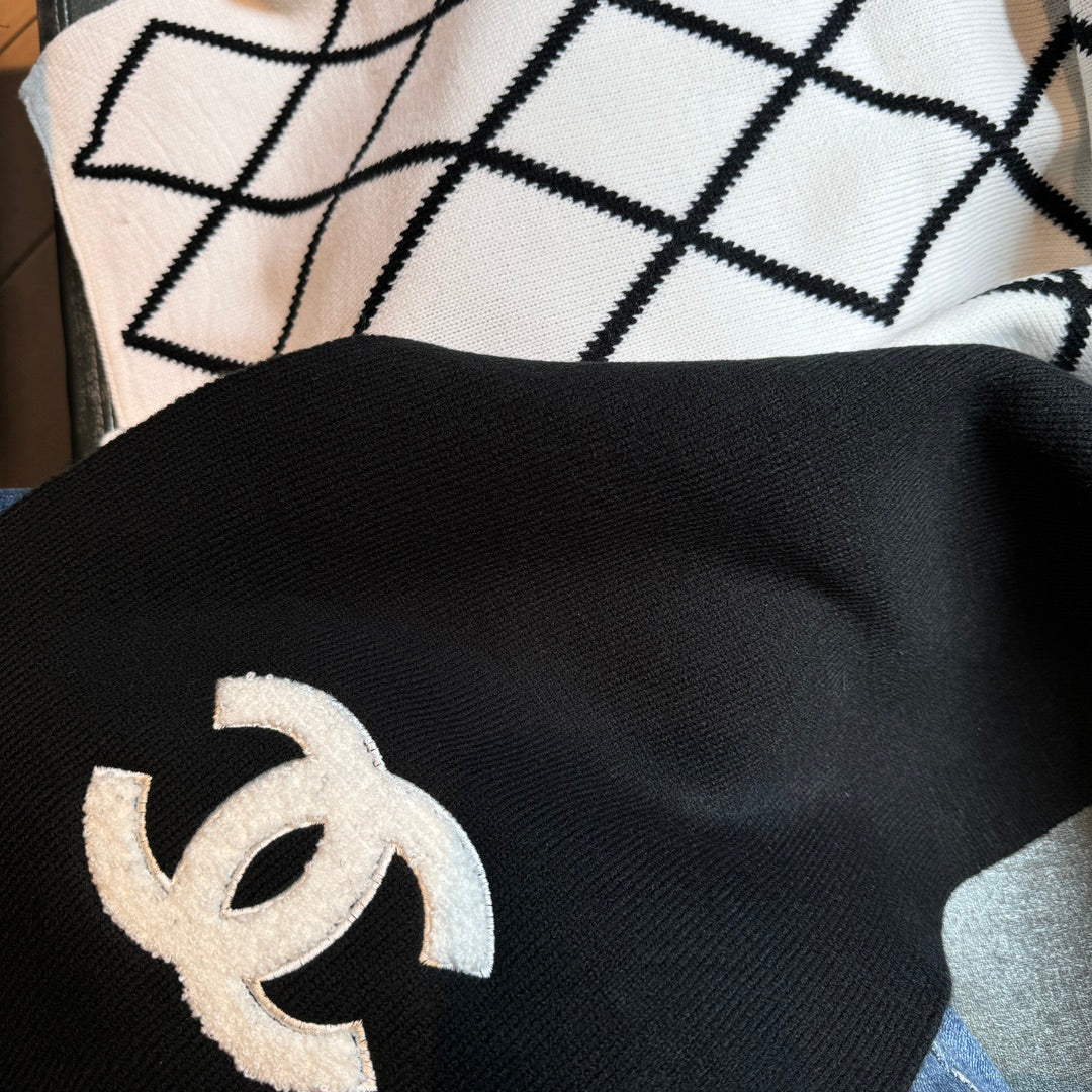 CC Scarf 195 CM White Mix Black Cashmere And Wool 418442