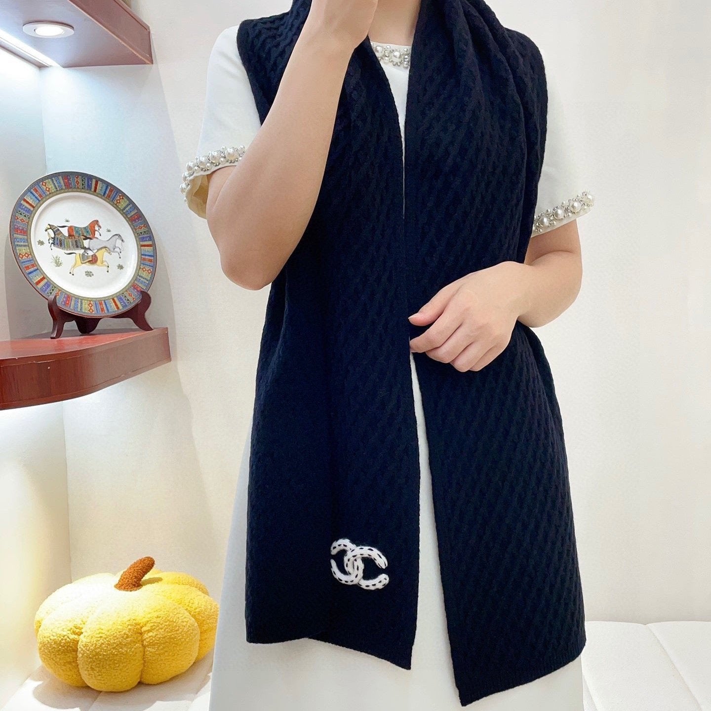 CC Scarf 195 CM Black Mix White Cashmere And Wool 418443