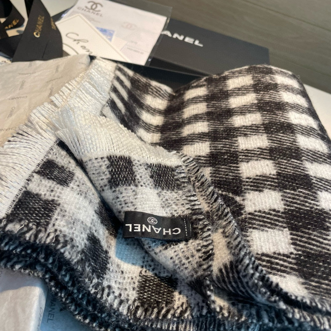 CC Scarf 190 CM In Black And White Plaid Cashmere Mix Wool And Silk 418284