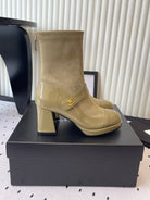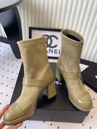 CC 25 Short Boot Olive Green Suede Patent Leather 514104