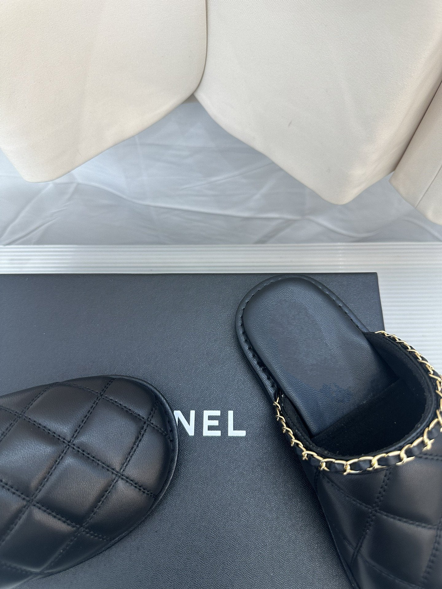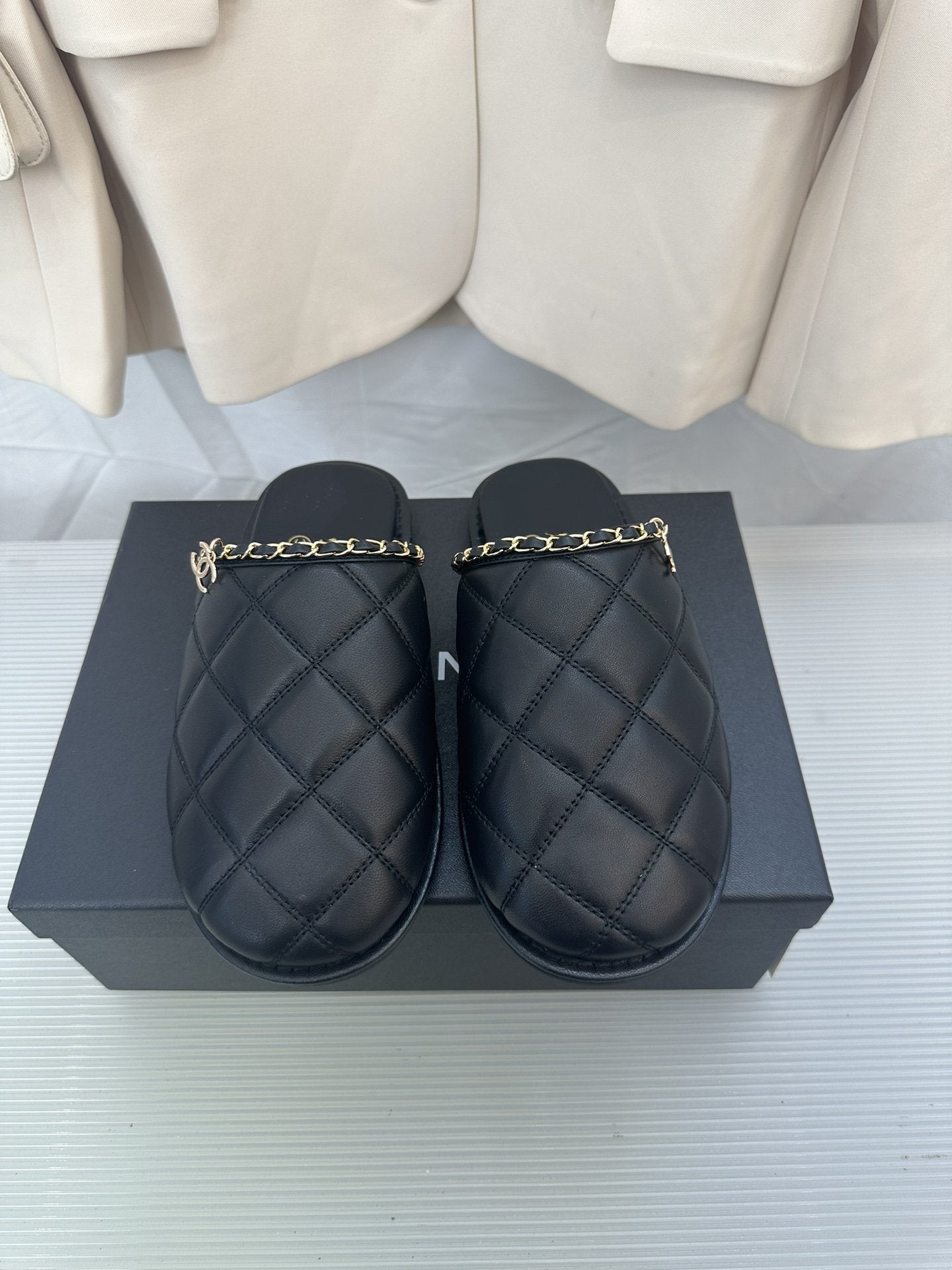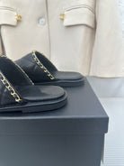 CC Black Lambskin Gold Chain Mules