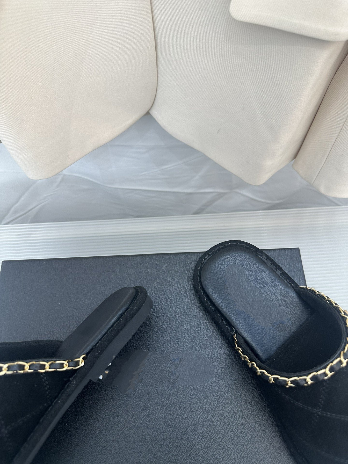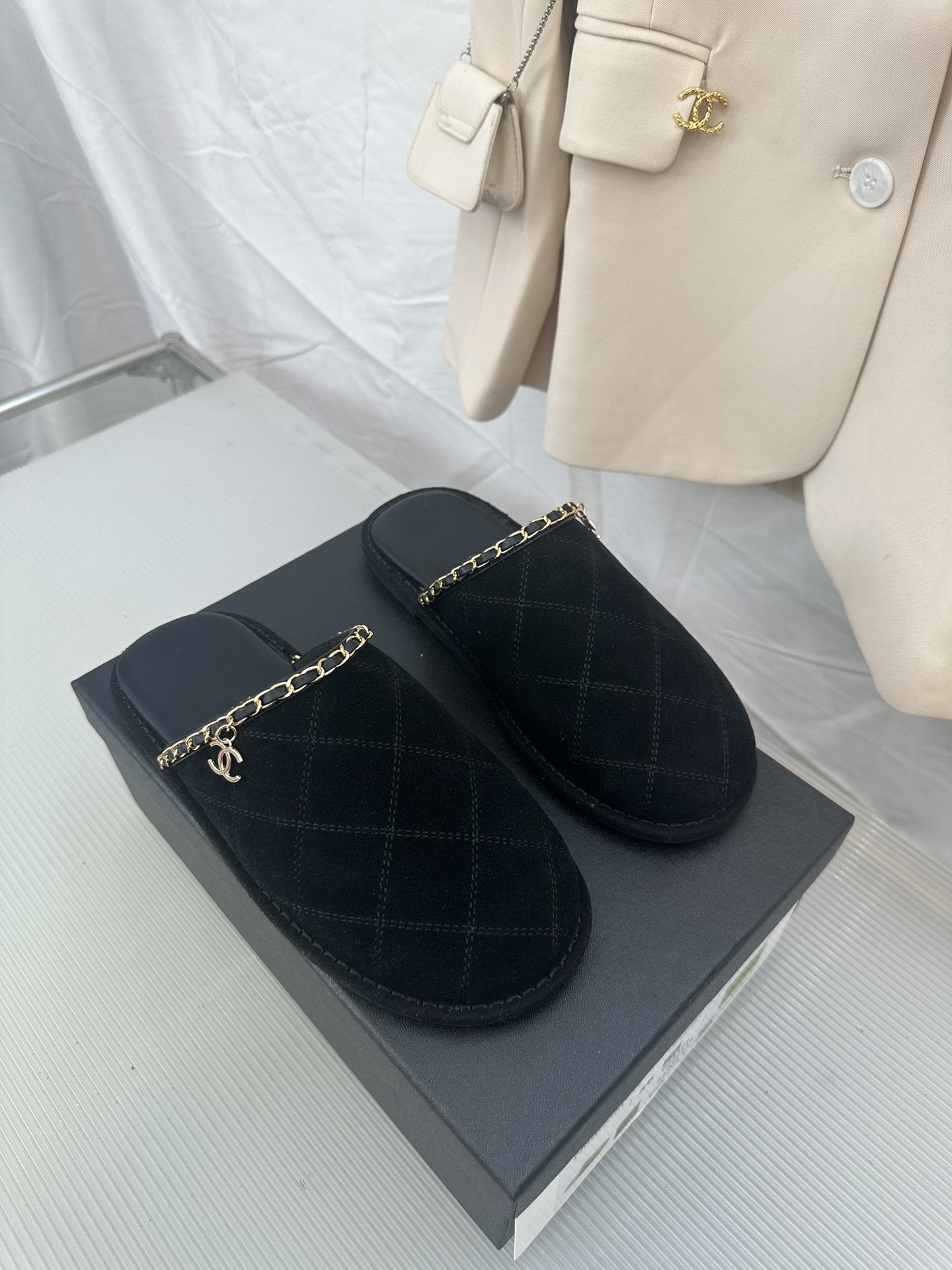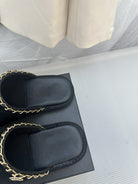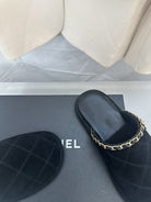 CC Black Suede Gold Chain Mules