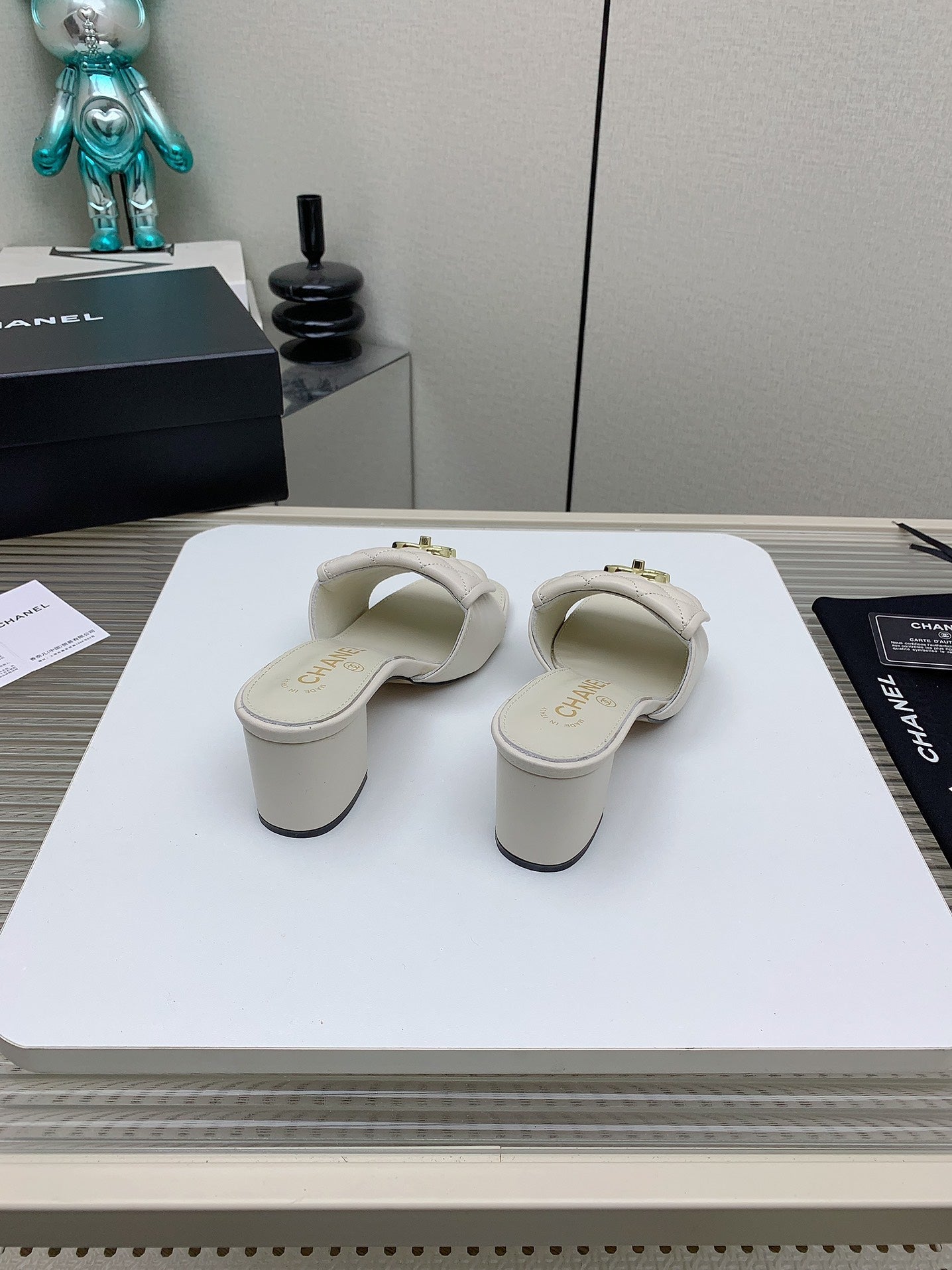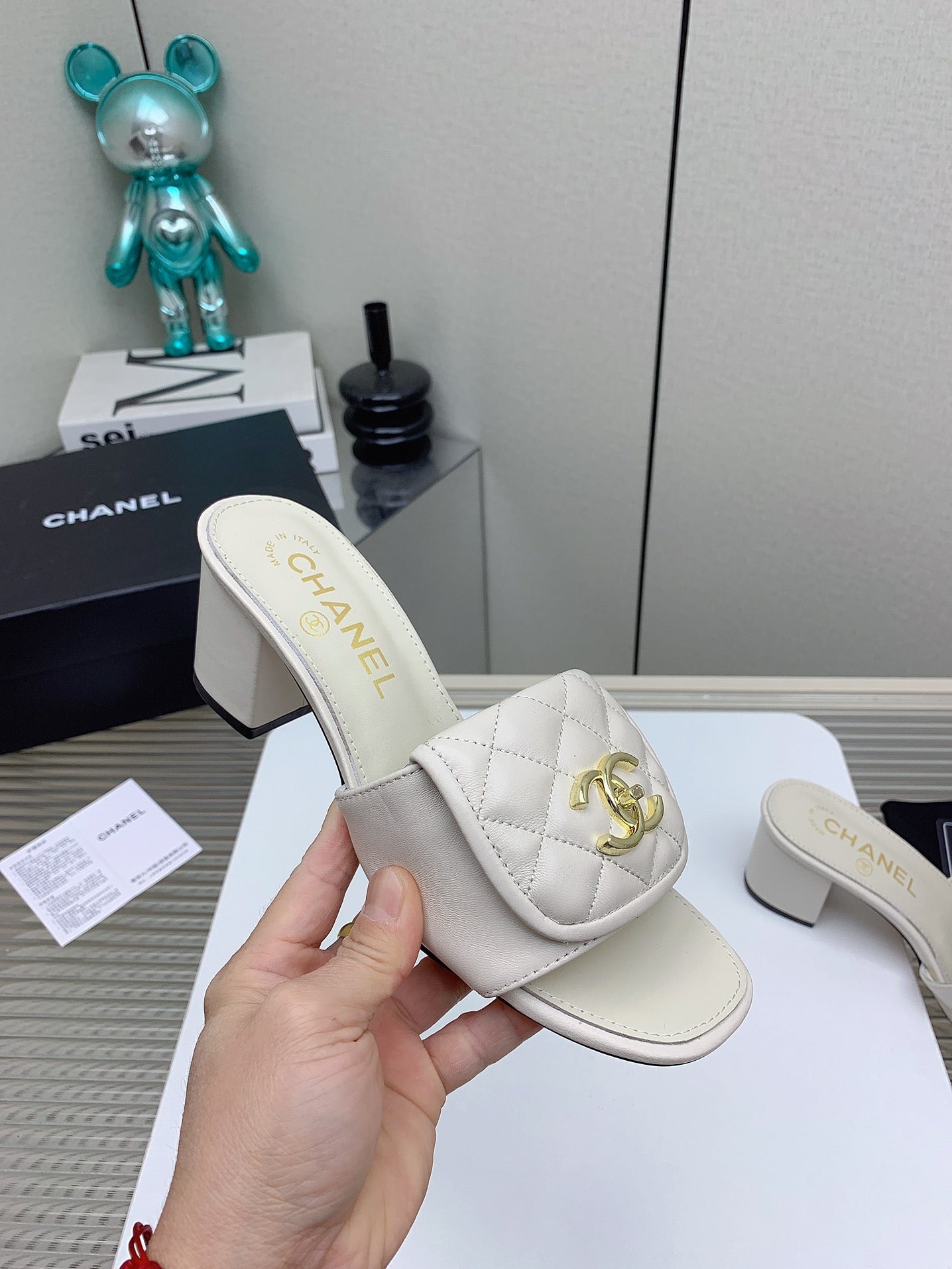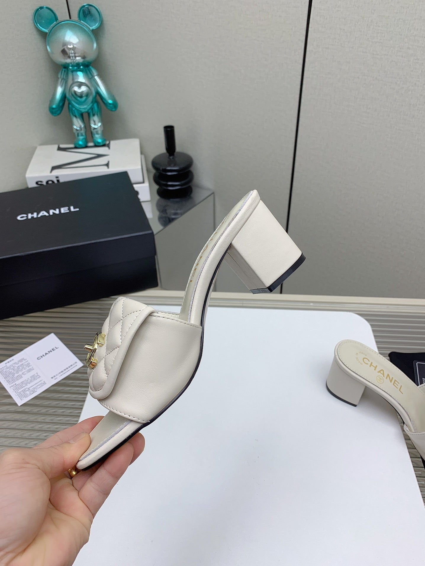 CC Mule Sandals 50mm In White Quilted Lambskin 148944