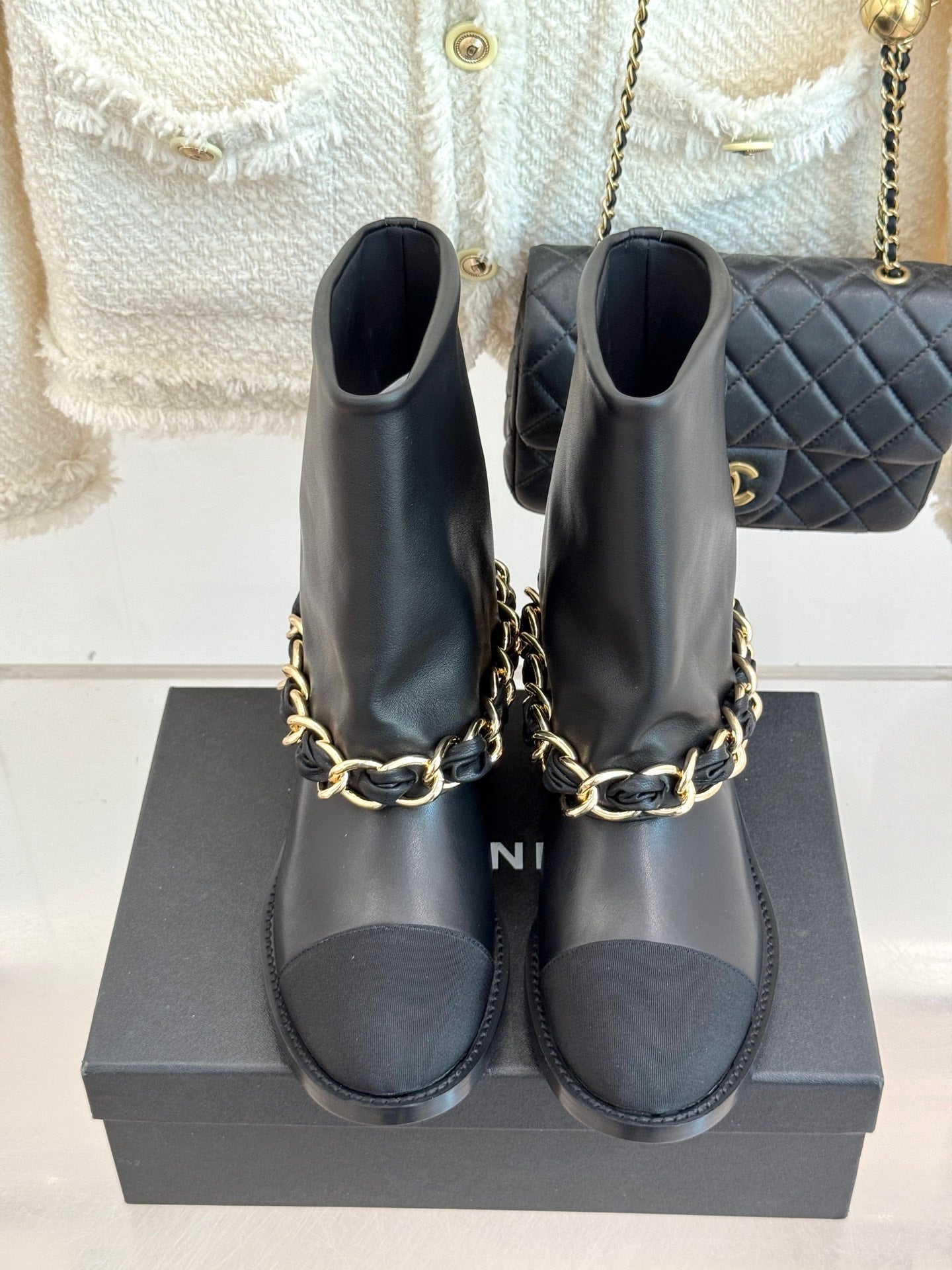 Chanel 25 Large Chain Flat-solved Boot Black Lambskin 465422