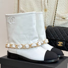 Chanel 25 Large Chain Flat-solved Boot White Lambskin 465420