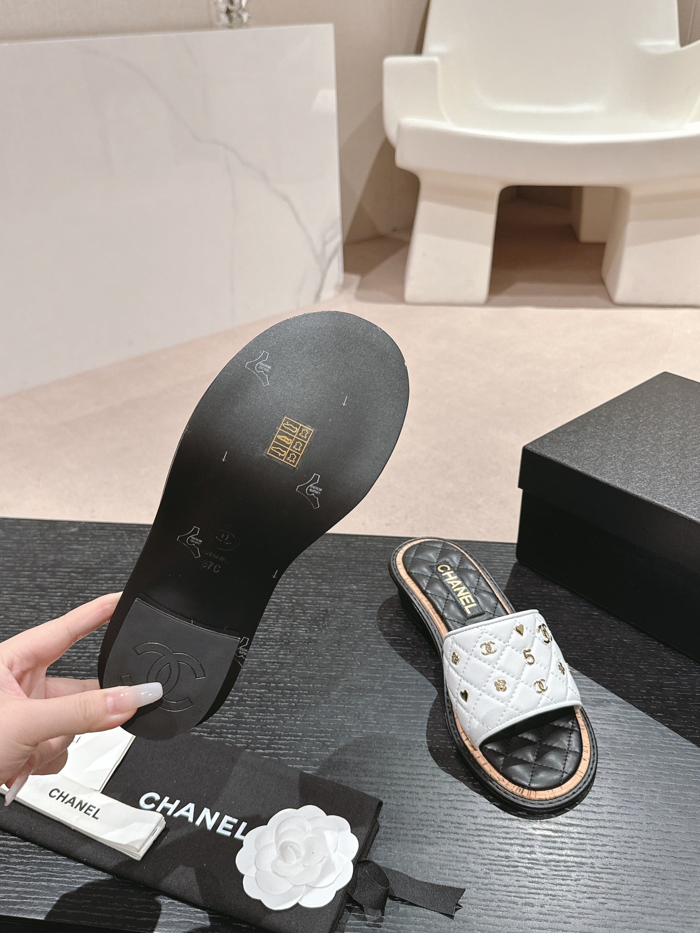 mule sandal striped black white canvas calfskin