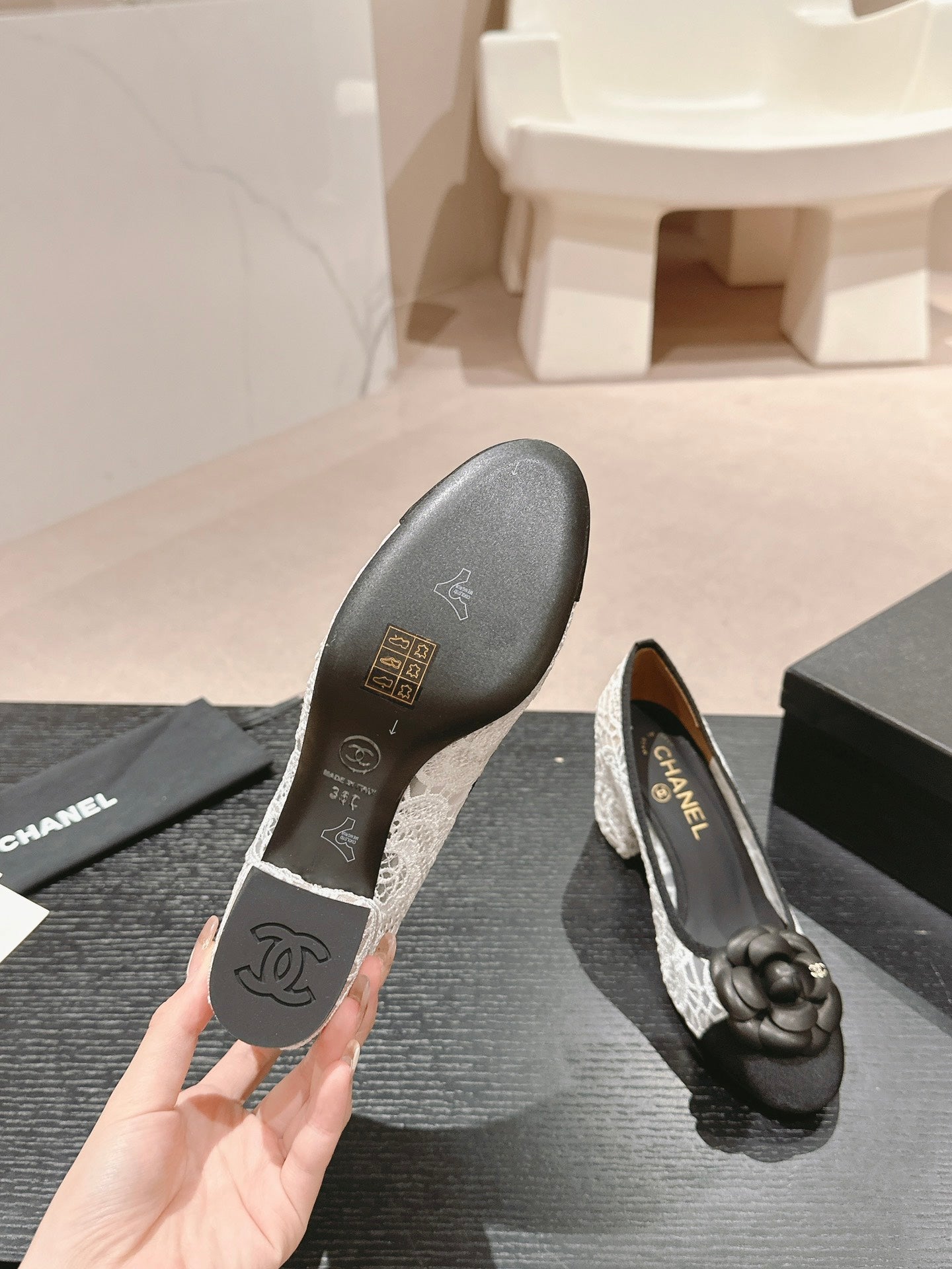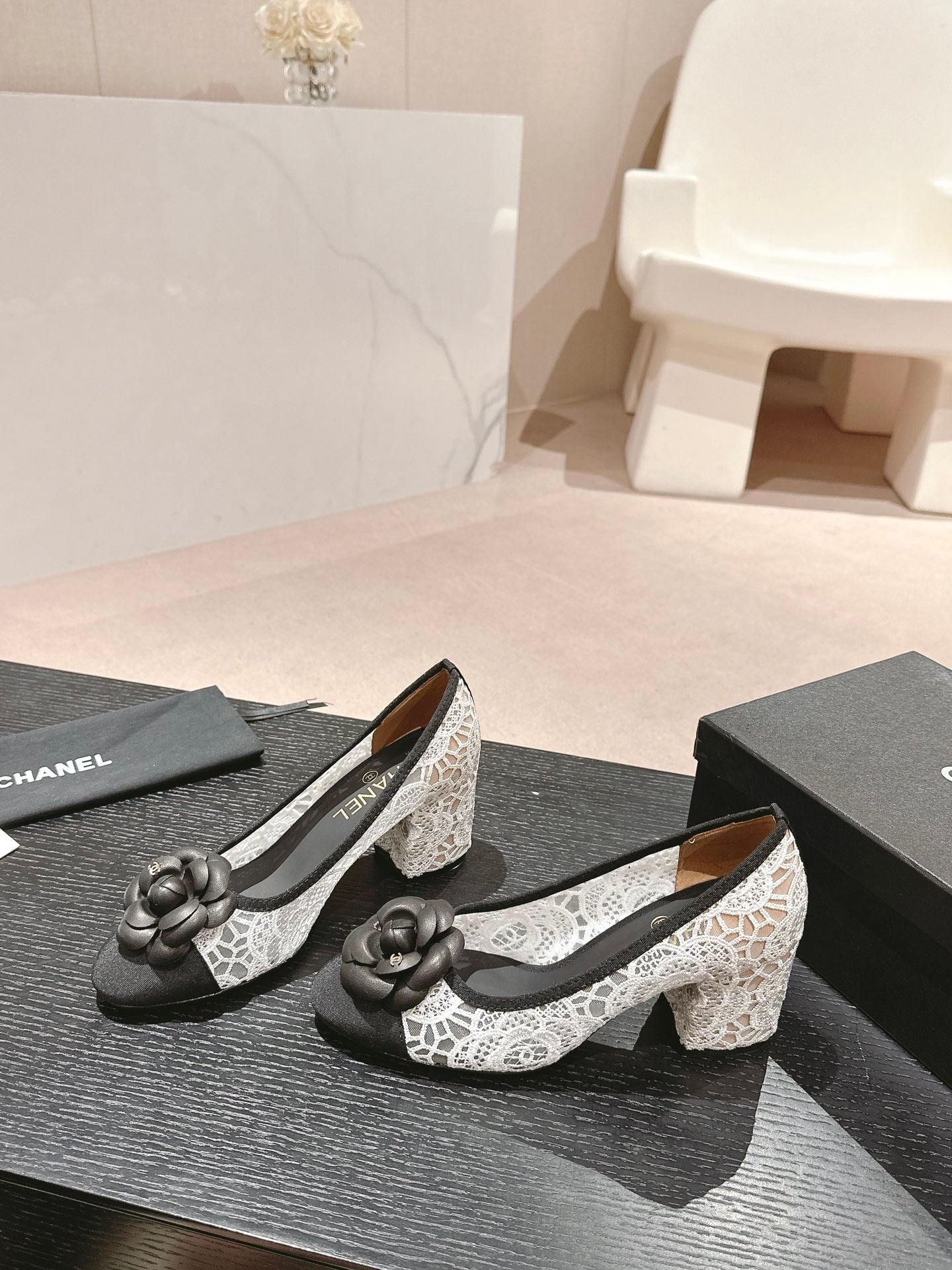cc pump 60 flower white lace fabric