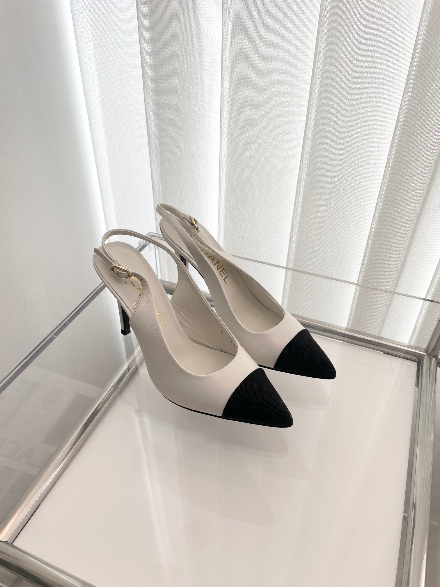CC Slingback 95mm White Lambskin And Denim Fabric