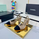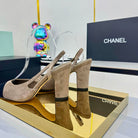 Chanel Slingback 90mm Neutral Beige Black Suede 469673