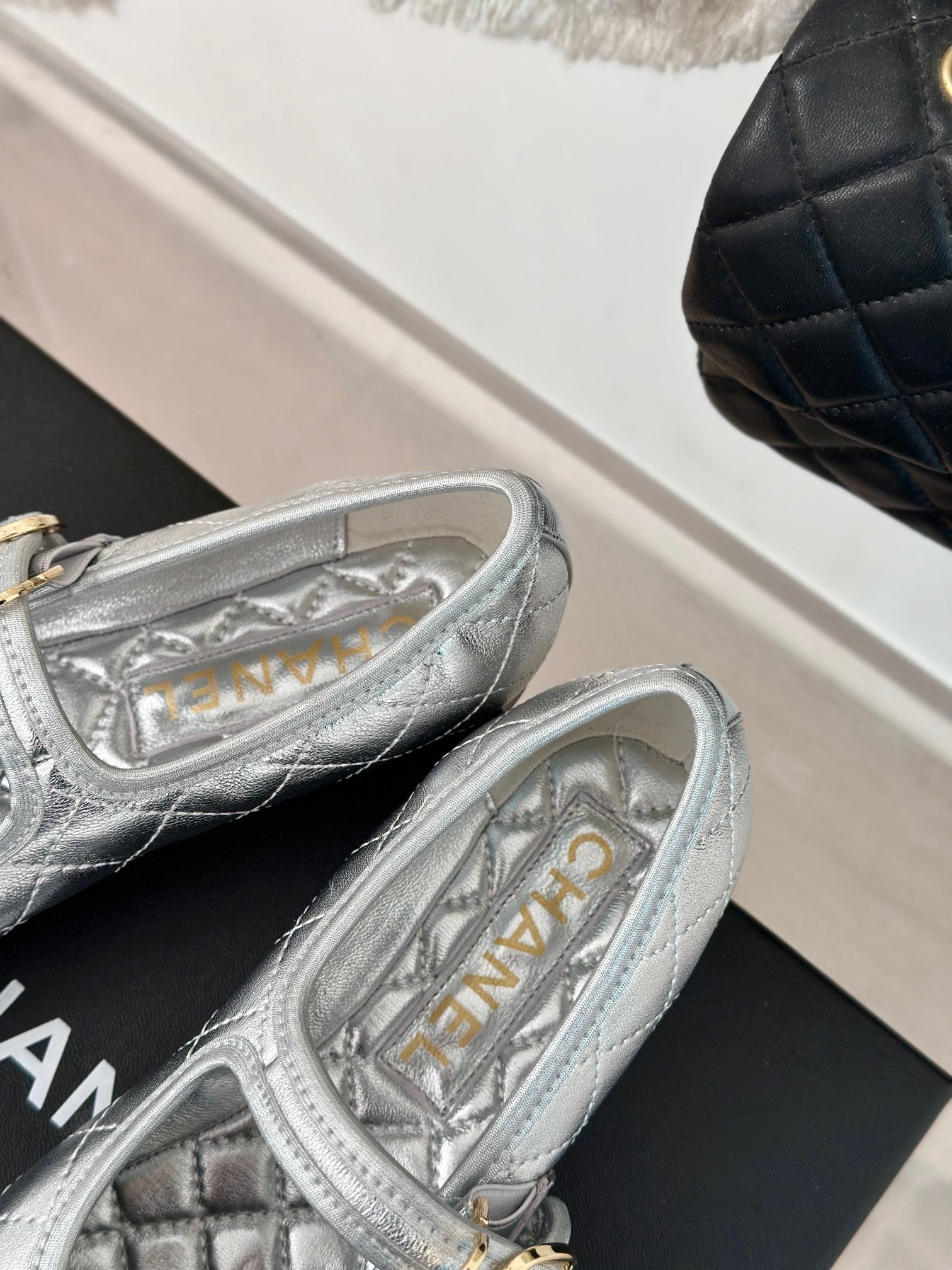 mary jane silver metalic quilted lambskin