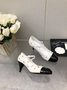 MARY JANE WHITE MIX BLACK LAMBSKIN ATTACH METAL