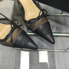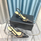 Slingback 50 Black Mesh Calfskin Pointed Toe