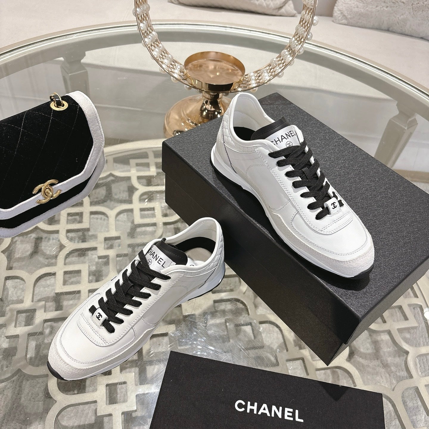 cc trainer black calfskin white mesh