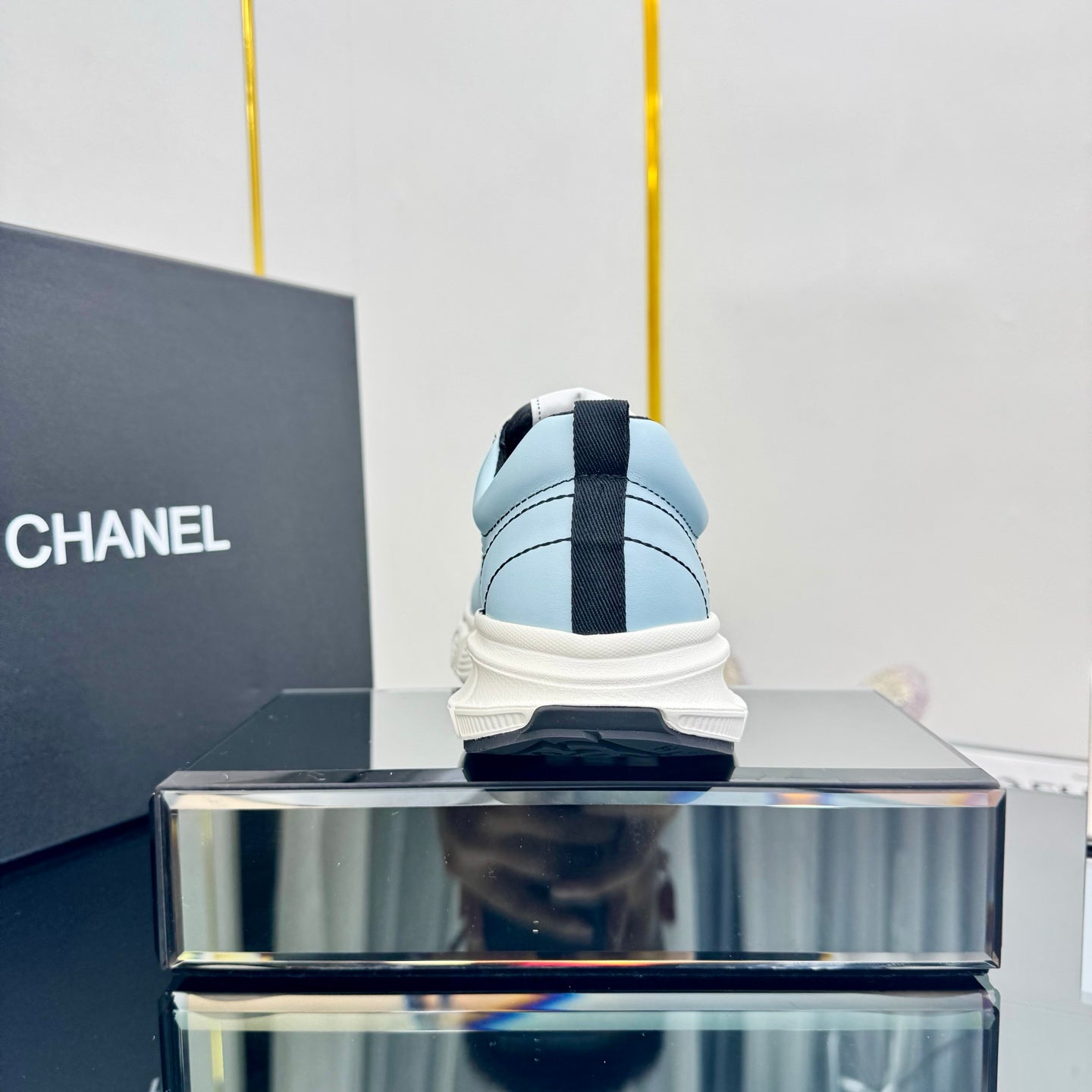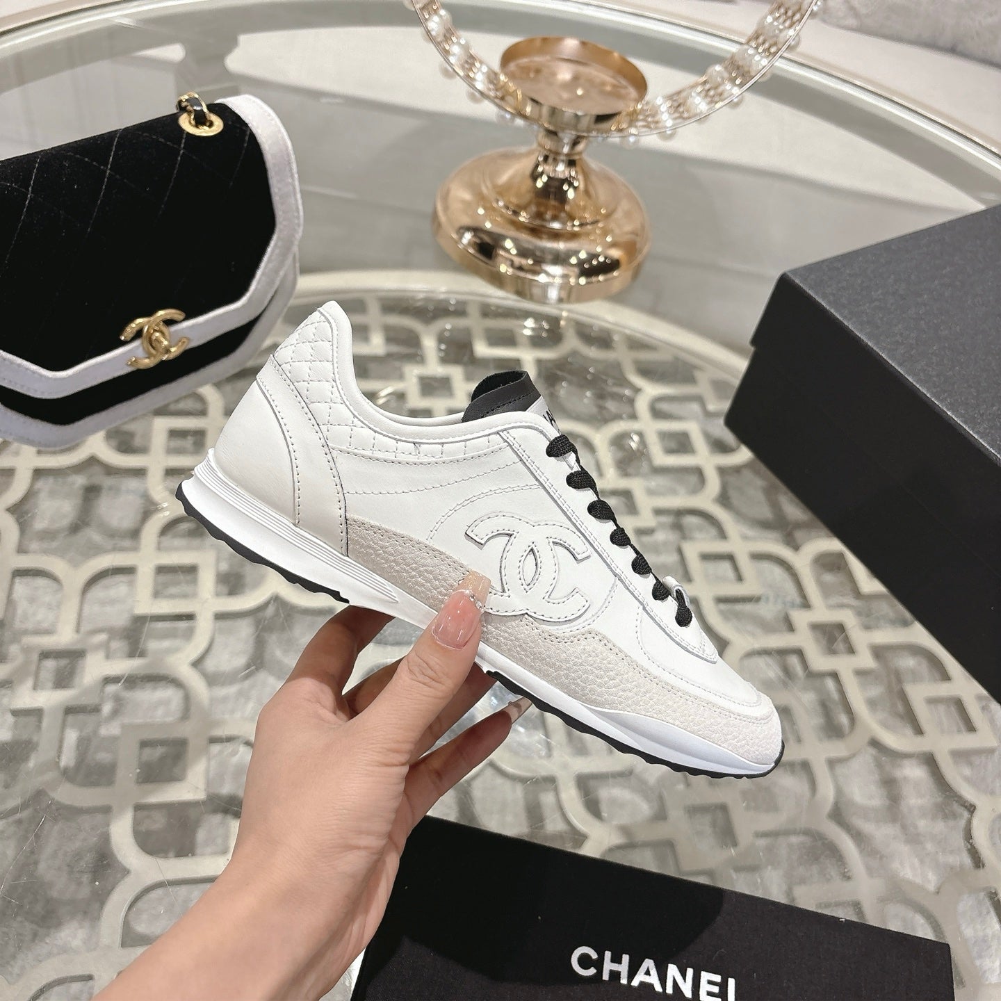 cc trainer black gold calfskin white mesh