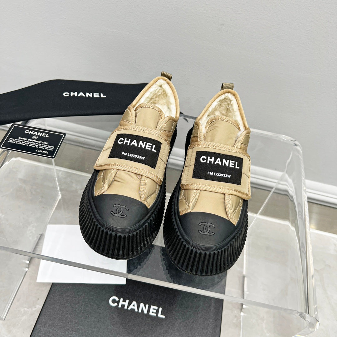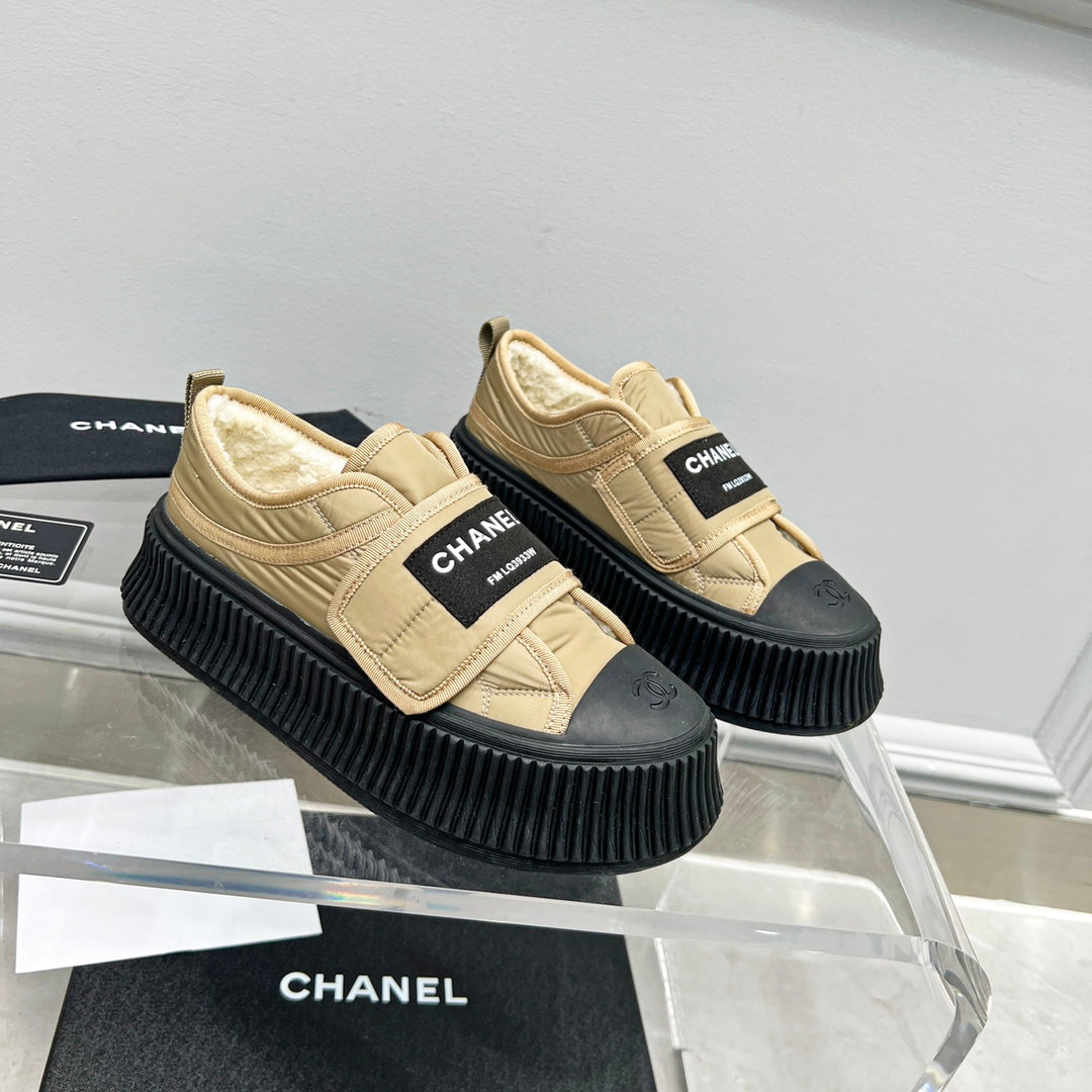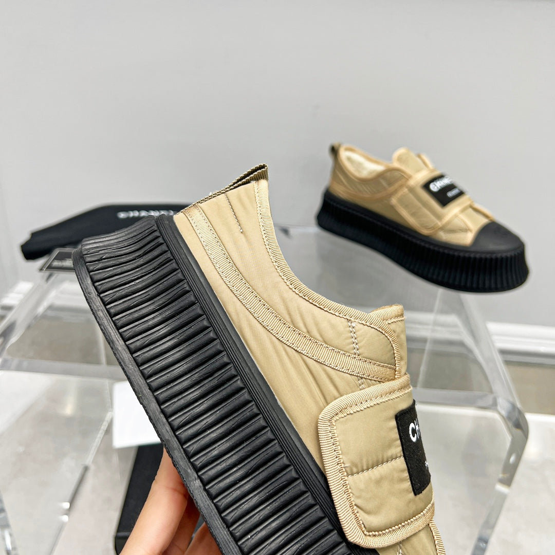 CC Low Sneaker Thick-Soled Beige Rain Velvet Fabric