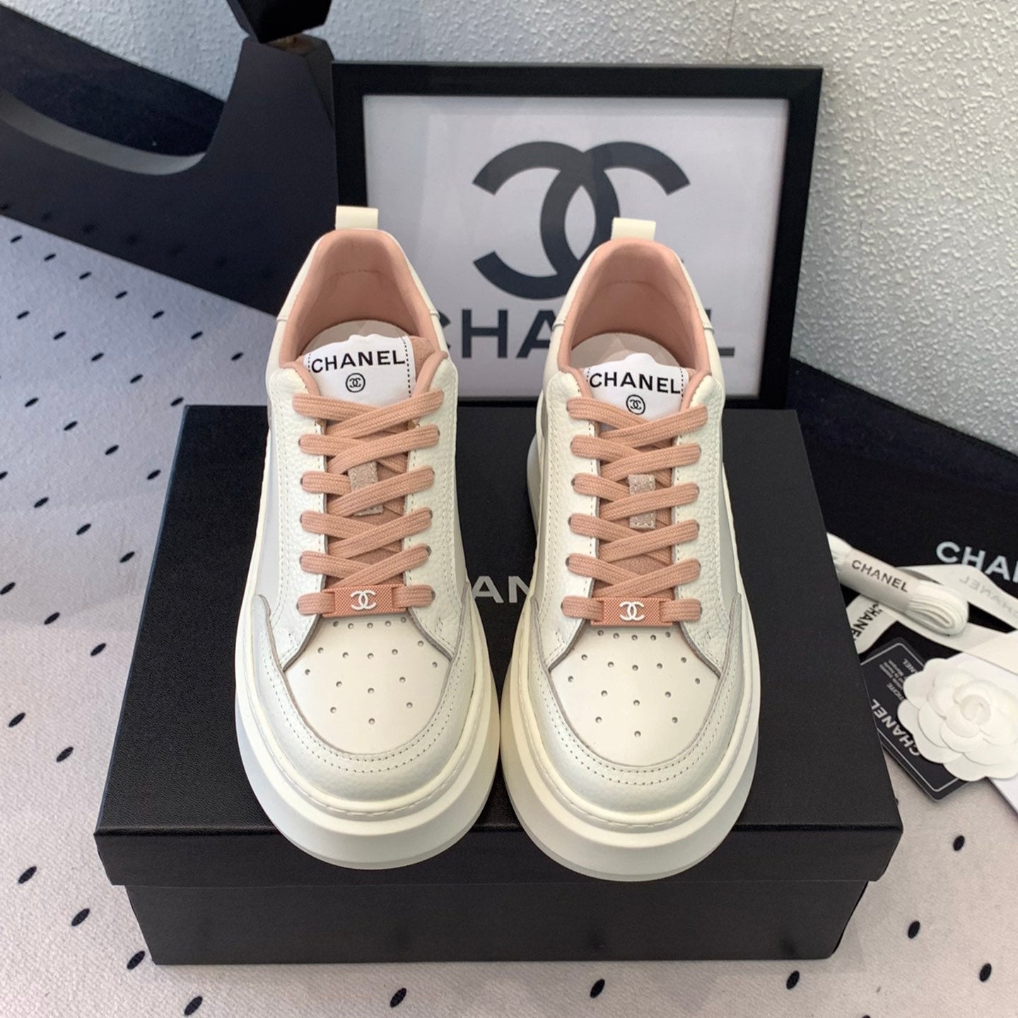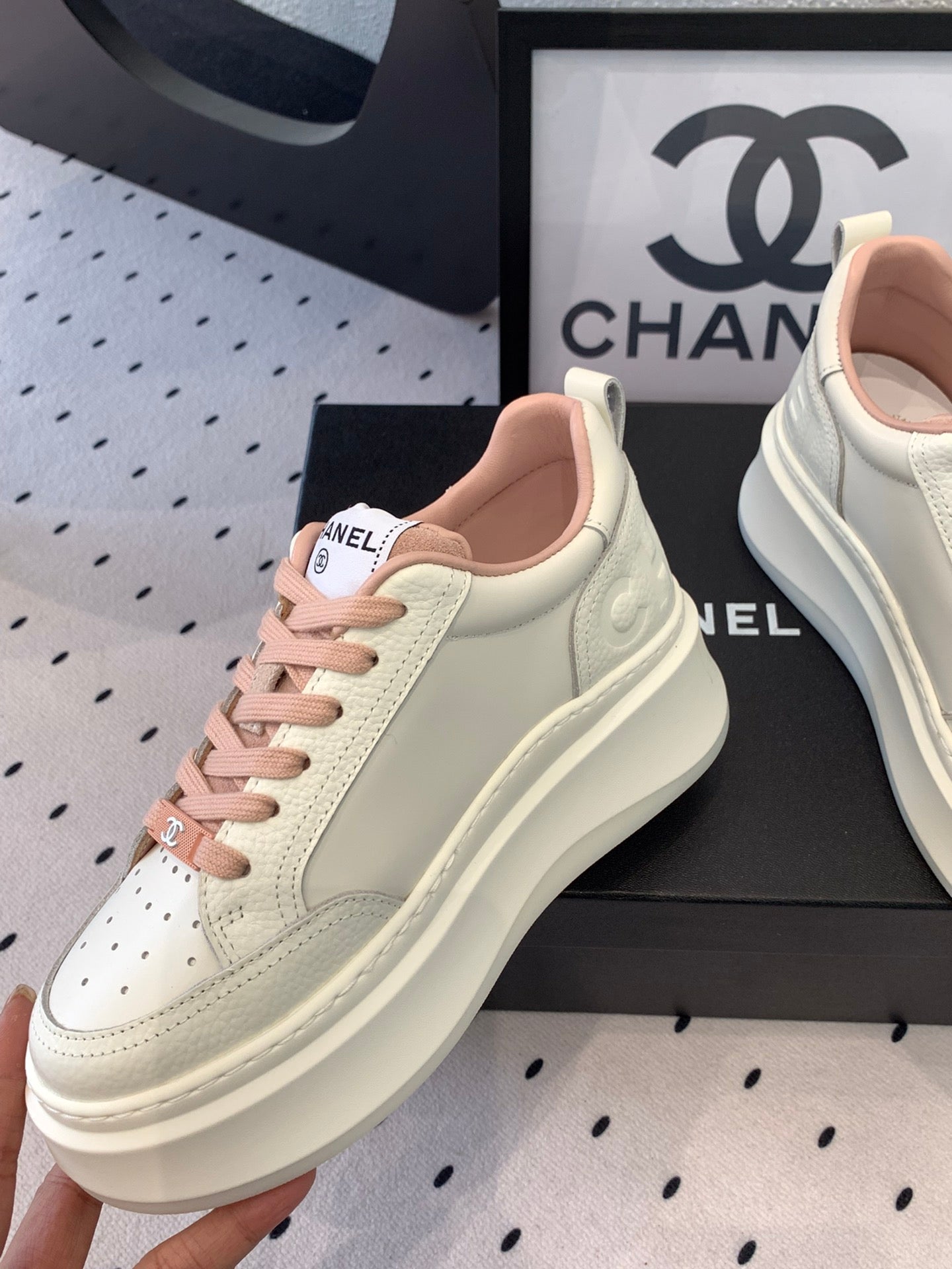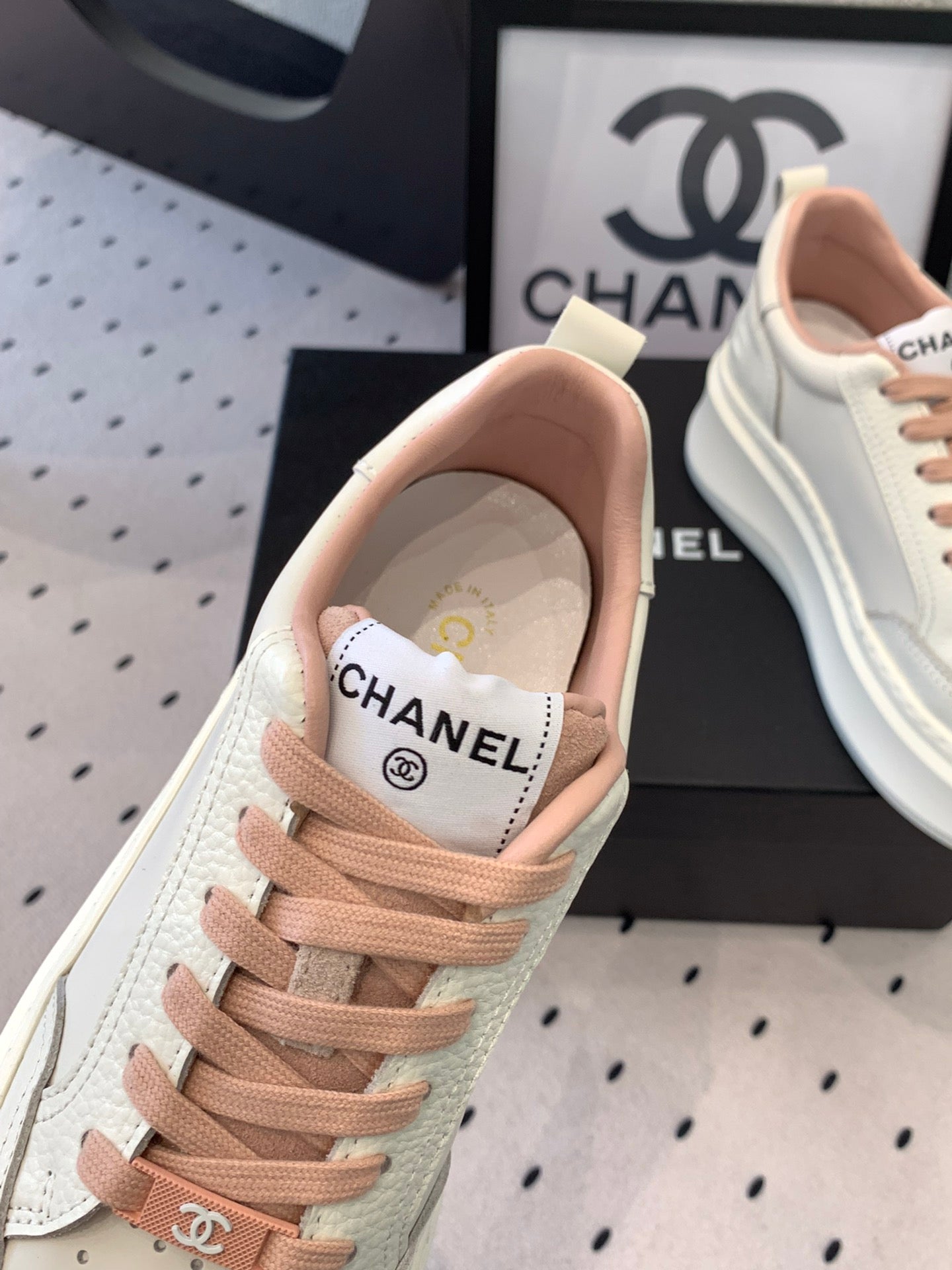 CC Sneaker In White Mix Rose Pink Cowhide 147104