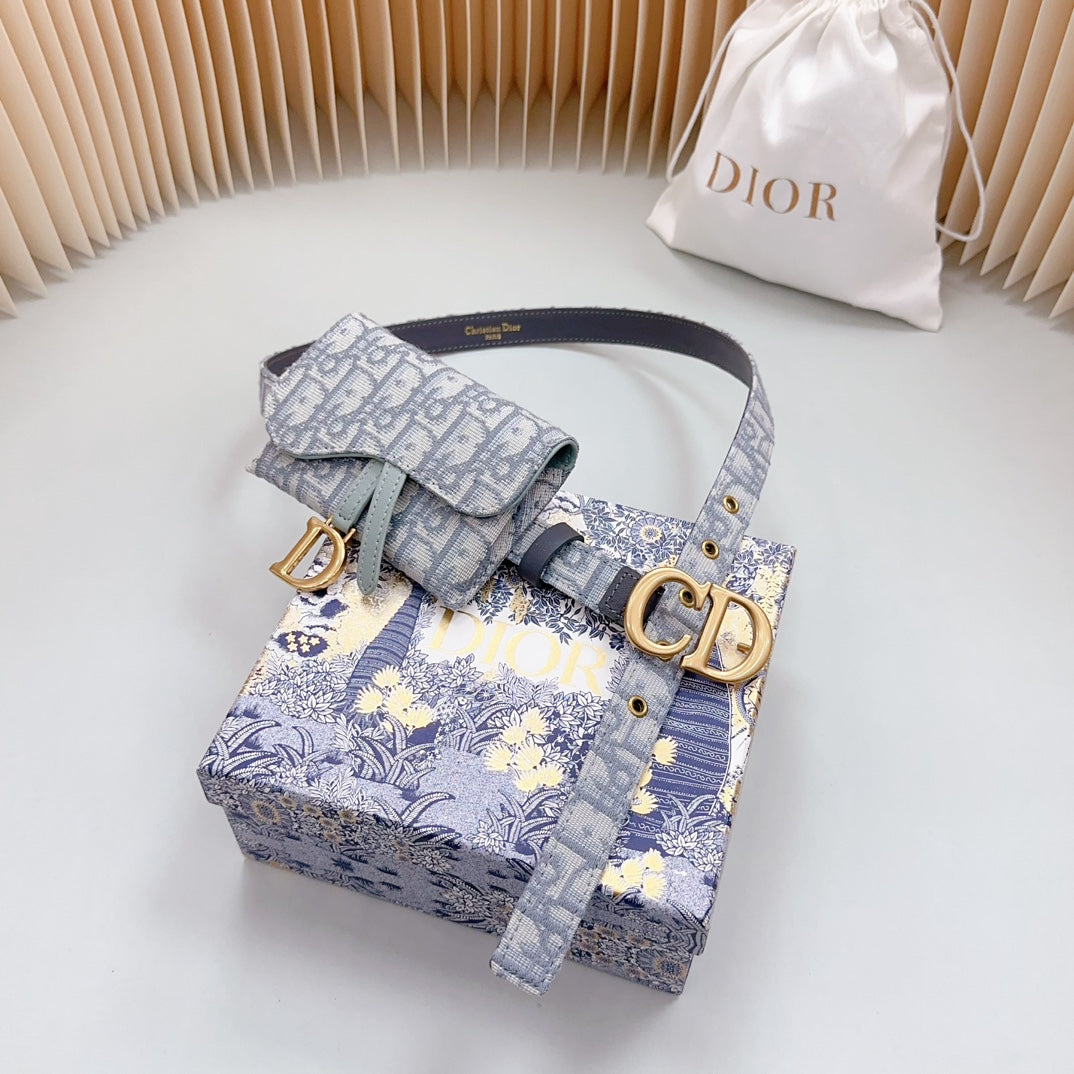 Saddle Belt Pouch Blue Beige CD Oblique Jacquard