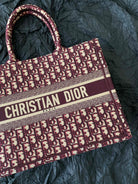 Medium CD Book Tote 36cm Burgundy Retro Style D Letter Embroidery