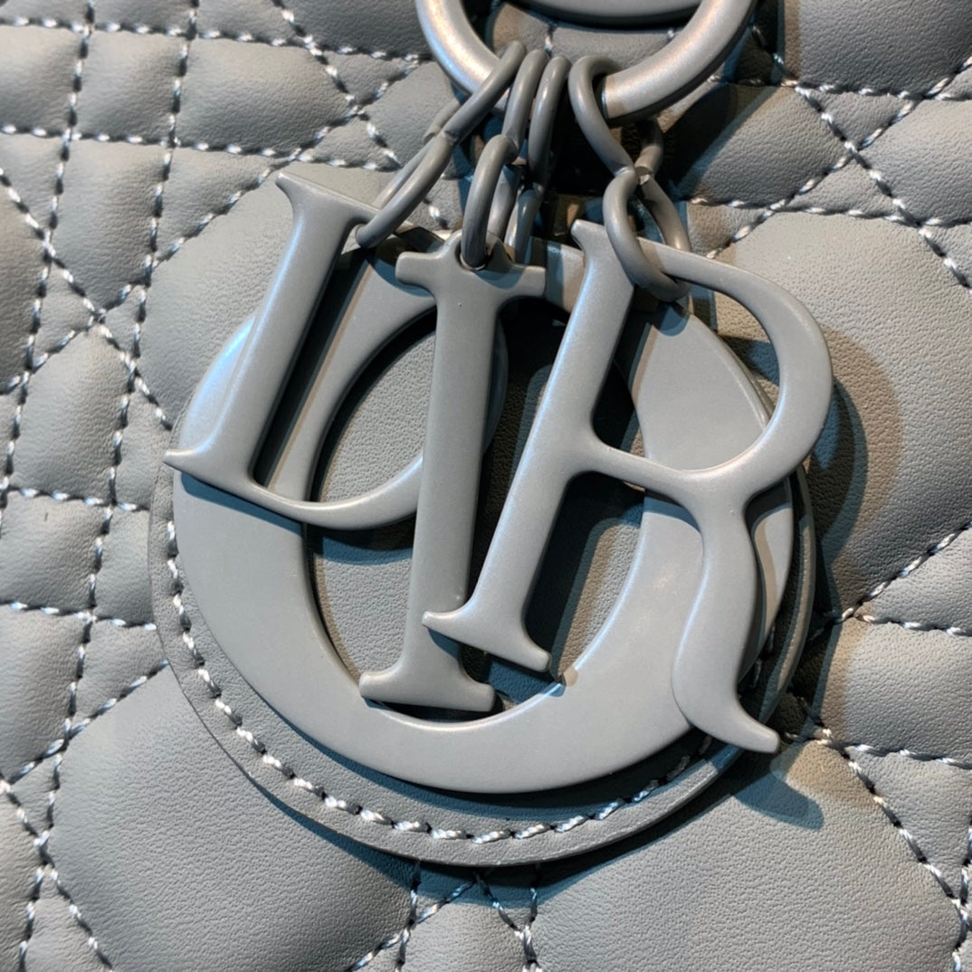 MEDIUM LADY D-JOY 26 WHITE LATTE CALFSKIN PEARL