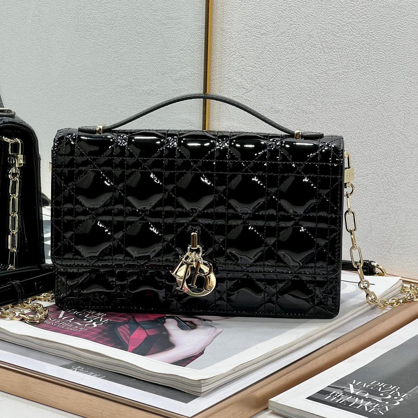MY CD 24 TOP HANDLE BAG BLACK PATENT LAMBSKIN