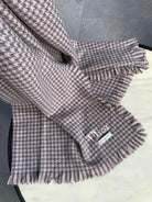 HOUNDSTOOTH SCARF 200 CM IN CAMEL BROWN WOOL 416827