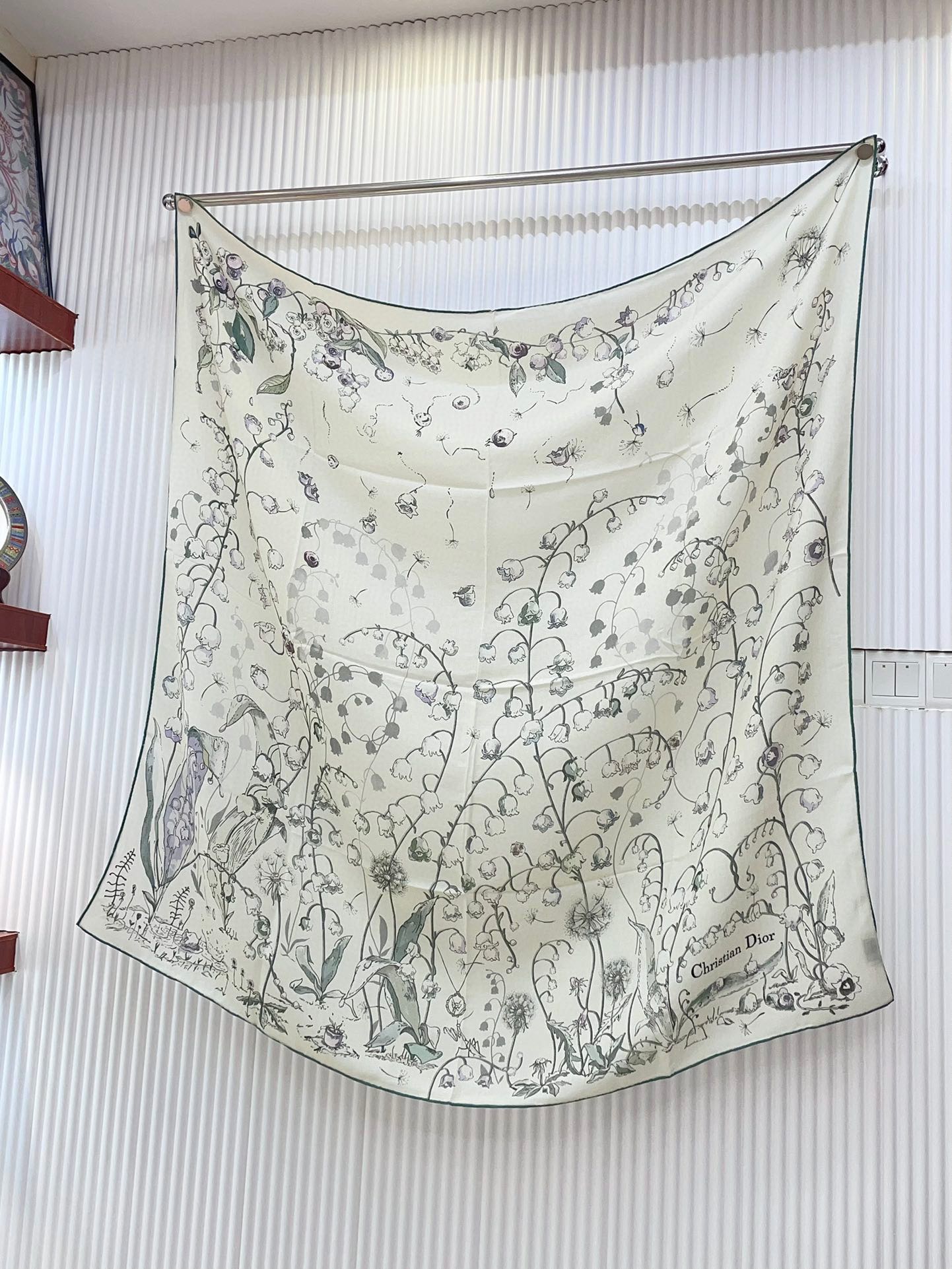 SCARF 140 CM IN WHITE MIX TEAL GREEN CASHMERE AND SILK 376423