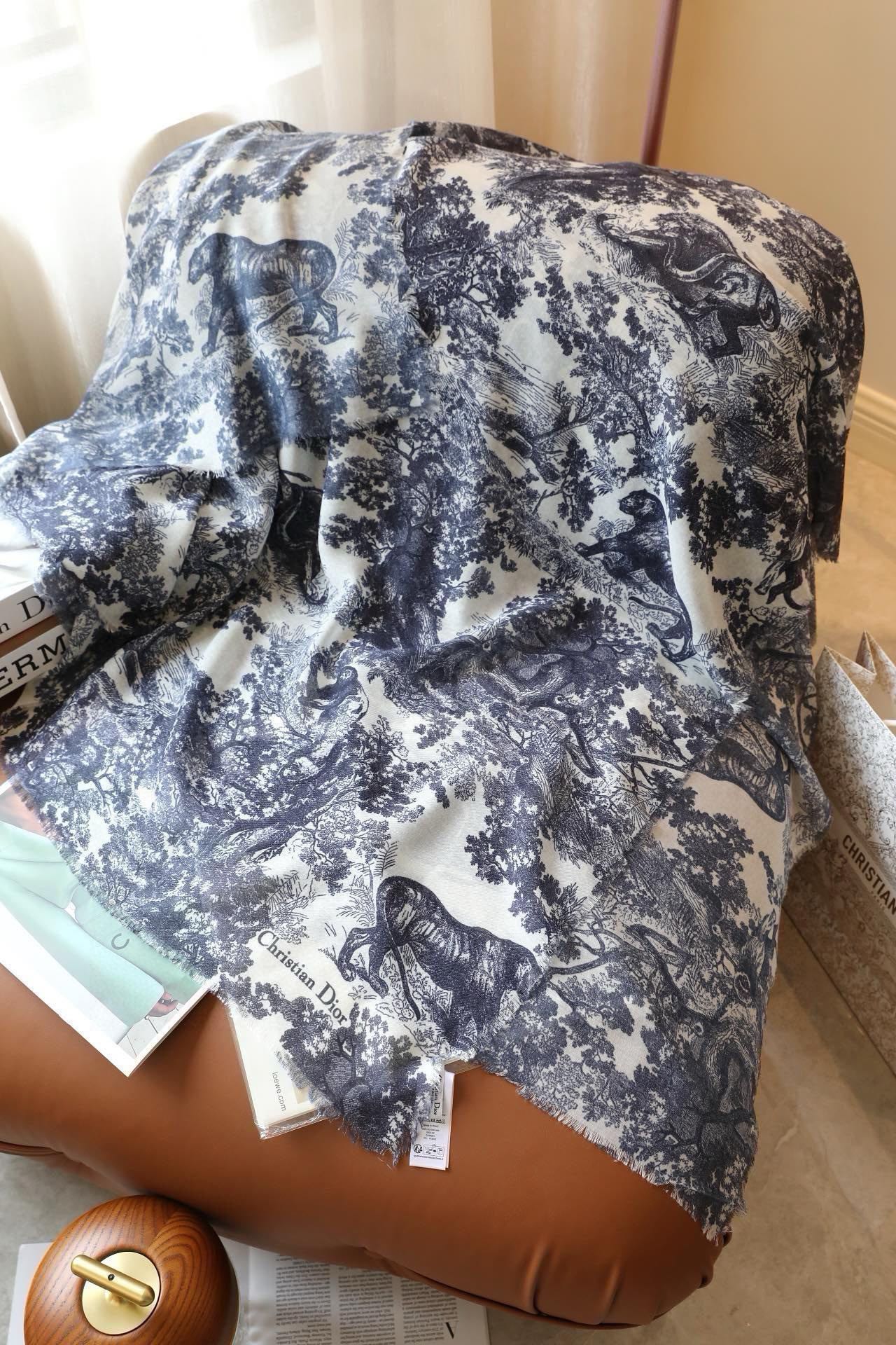 SCARF 180 CM IN STONE BLUE SILK AND CASHMERE 418263